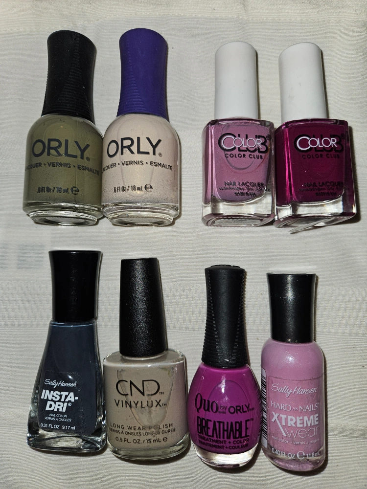 Selling a collection of nail polishes! Includes a variety of colours and brands like Orly, Sally Hansen, and Color Club. Perfect for trying out new shades or adding to your collection $4 for each Never used