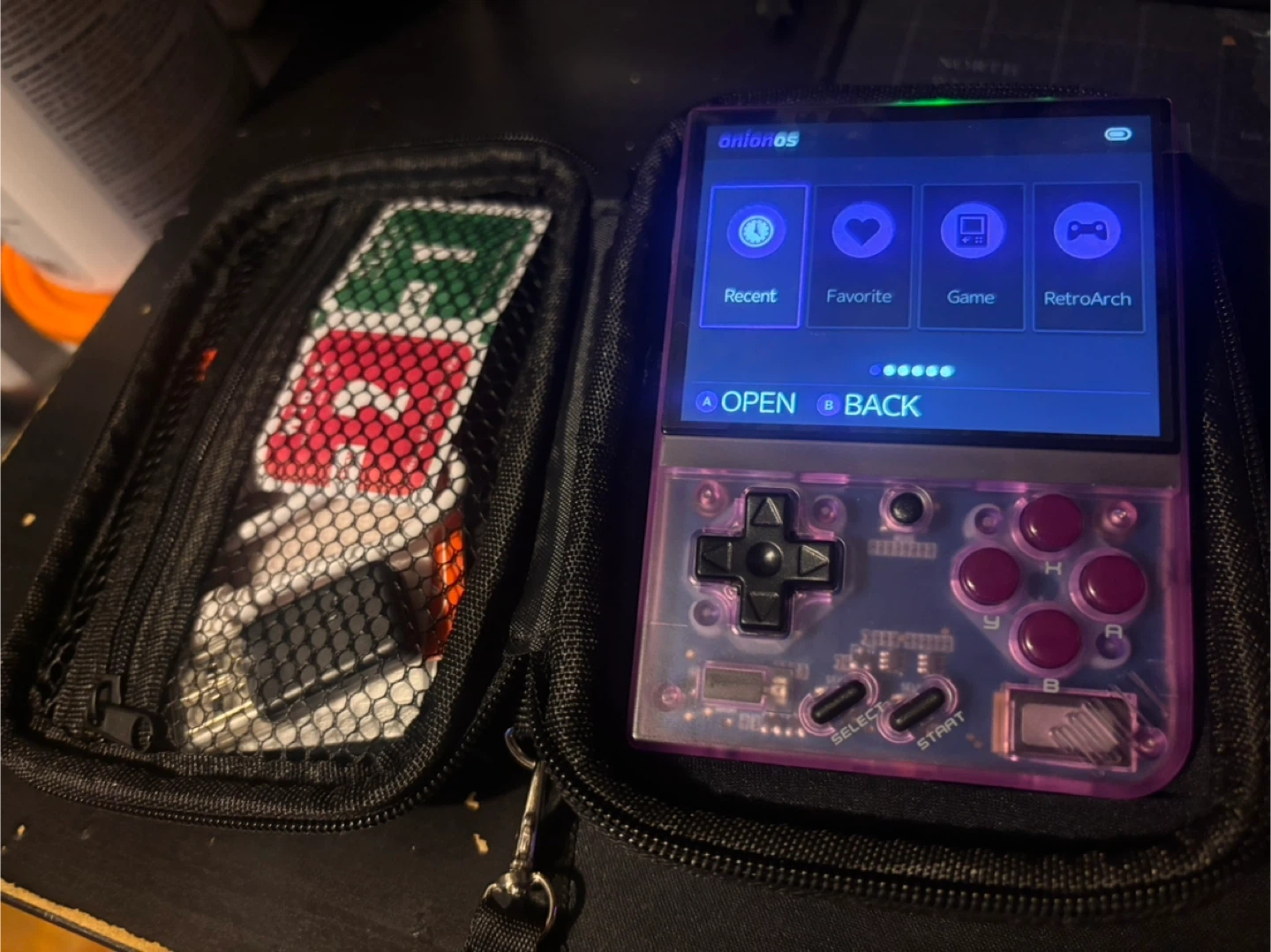 Selling a Miyoo Mini Plus handheld console! It's in great shape and comes with its case. Perfect for playing your favourite retro games on the go. Features include the OnionOS, Recent, Favorite, Game, and RetroArch.