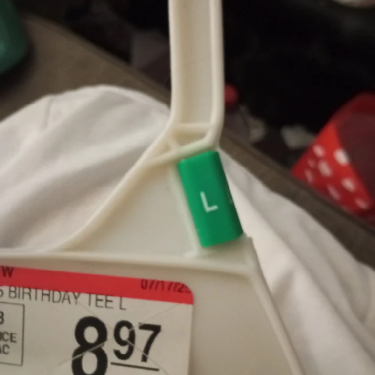 This is a white "Happy Birthday" tee with blue lettering and paw prints. It's a size large. Perfect for your furry friend's special day!