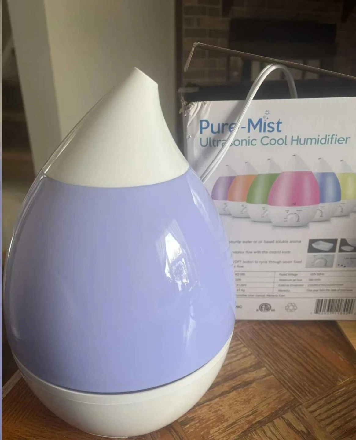 HQ ultrasonic humidifier, works well and lights up nicely and comes with the original box.. Adjustable mist control and LED light. Clean and in good condition. Great for bedroom, office, or small room. like new.