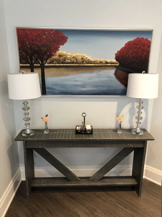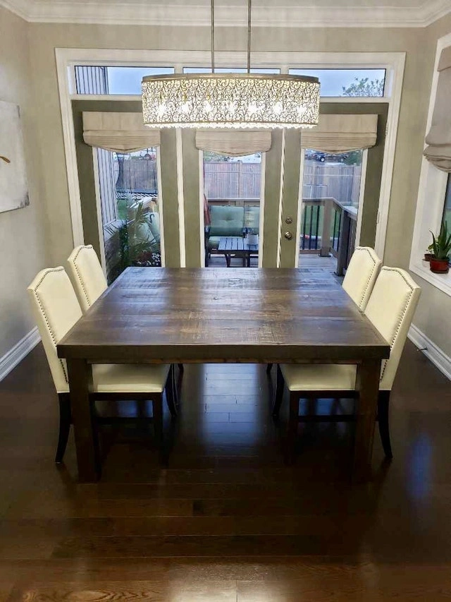 Handmade custom harvest tables, coffee tables, end tables, benches, and shelves. Perfect for your home or cottage! I also build outdoor harvest tables. Choose from four finishes: farmhouse brown, dark walnut, grey, or black. Legs and bottoms can be painted satin black or white, or fully stained. Tops are finished with a satin varnish. Outdoor tables use top-line exterior products. I can build to your dimensions and offer different leg styles, including painted posts, stained trestle, or turned wood.