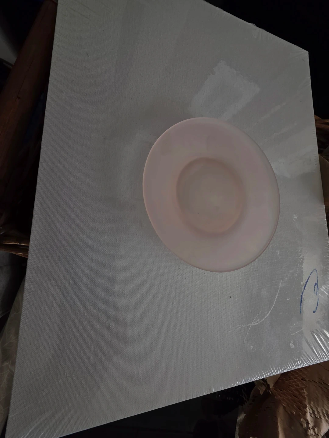 This item is a vintage satin or frosted pink glass plate likely a depression-era piece of tableware.