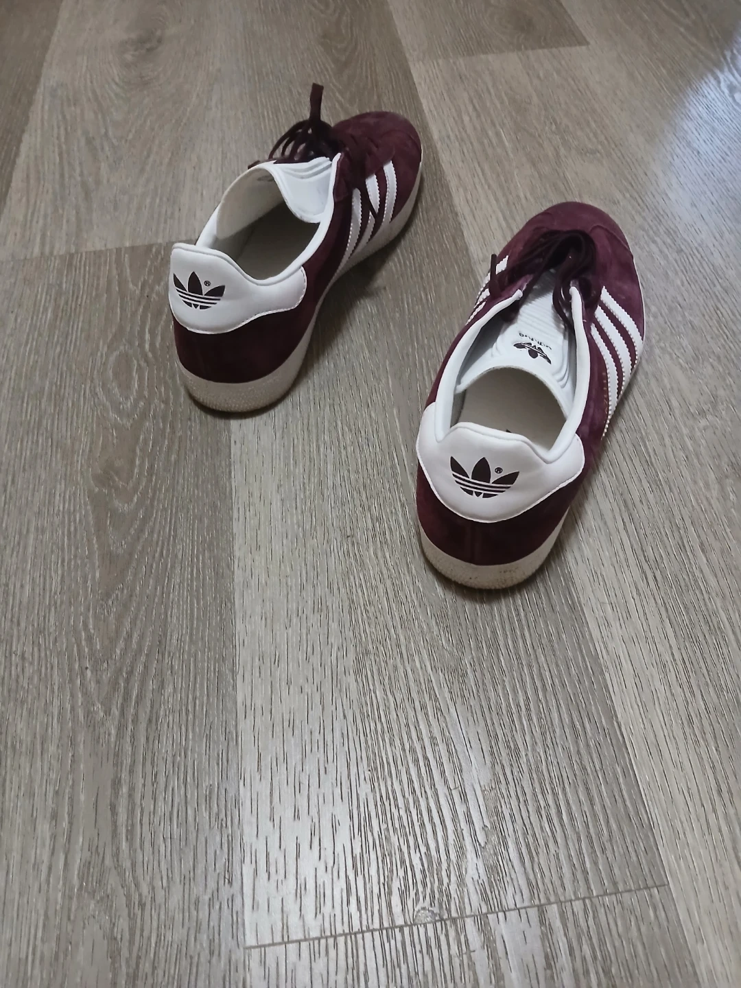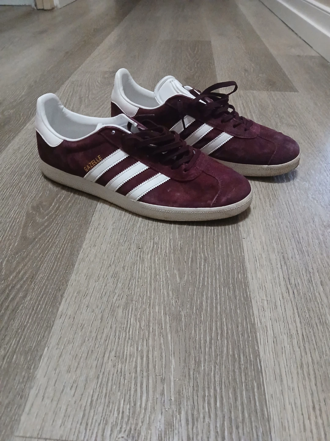 Selling a pair of Adidas Gazelle sneakers in a burgundy colour. These classic shoes are in good condition and ready for a new home. Perfect for adding a touch of retro style to your wardrobe!