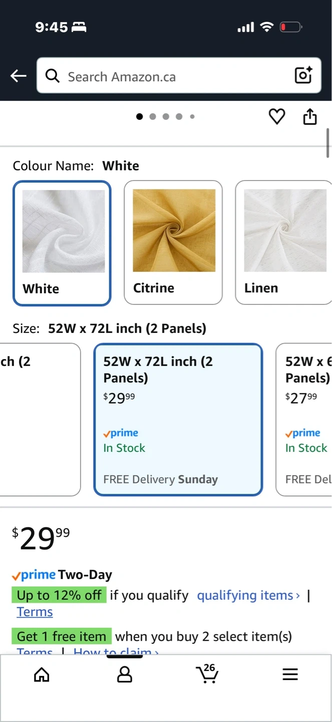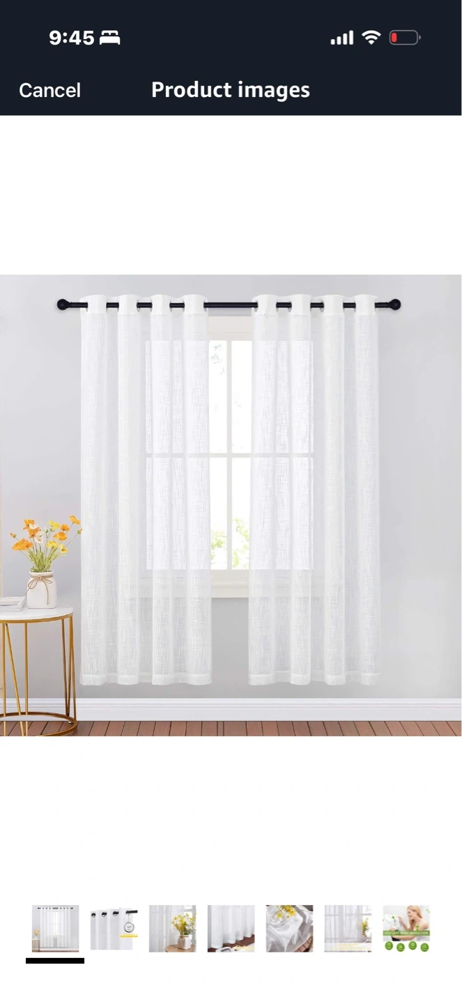 White sheer curtains, 2 panels included. Size is 52 inches wide by 72 inches long. Sheer fabric lets in natural light while providing some privacy. Easy to hang with standard curtain rods.