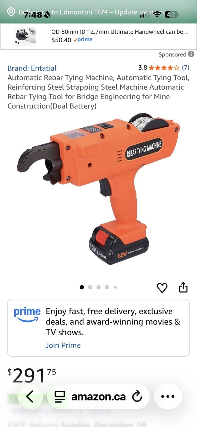 This is an automatic rebar tying machine, in excellent condition and ready to speed up your construction projects! It features a 12V Li-ion battery and comes with a charger and an extra battery for extended use. This tool is designed for reinforcing steel strapping in bridge engineering or mine construction. Key features include: Automatic tying mechanism, Dual battery system, Rebar tying machine, Reinforcing steel strapping tool. This item is in used, but like new condition. Get your hands on this rebar tying machine and make tying rebar faster than making a cup of coffee. If the ad is up, it's available.