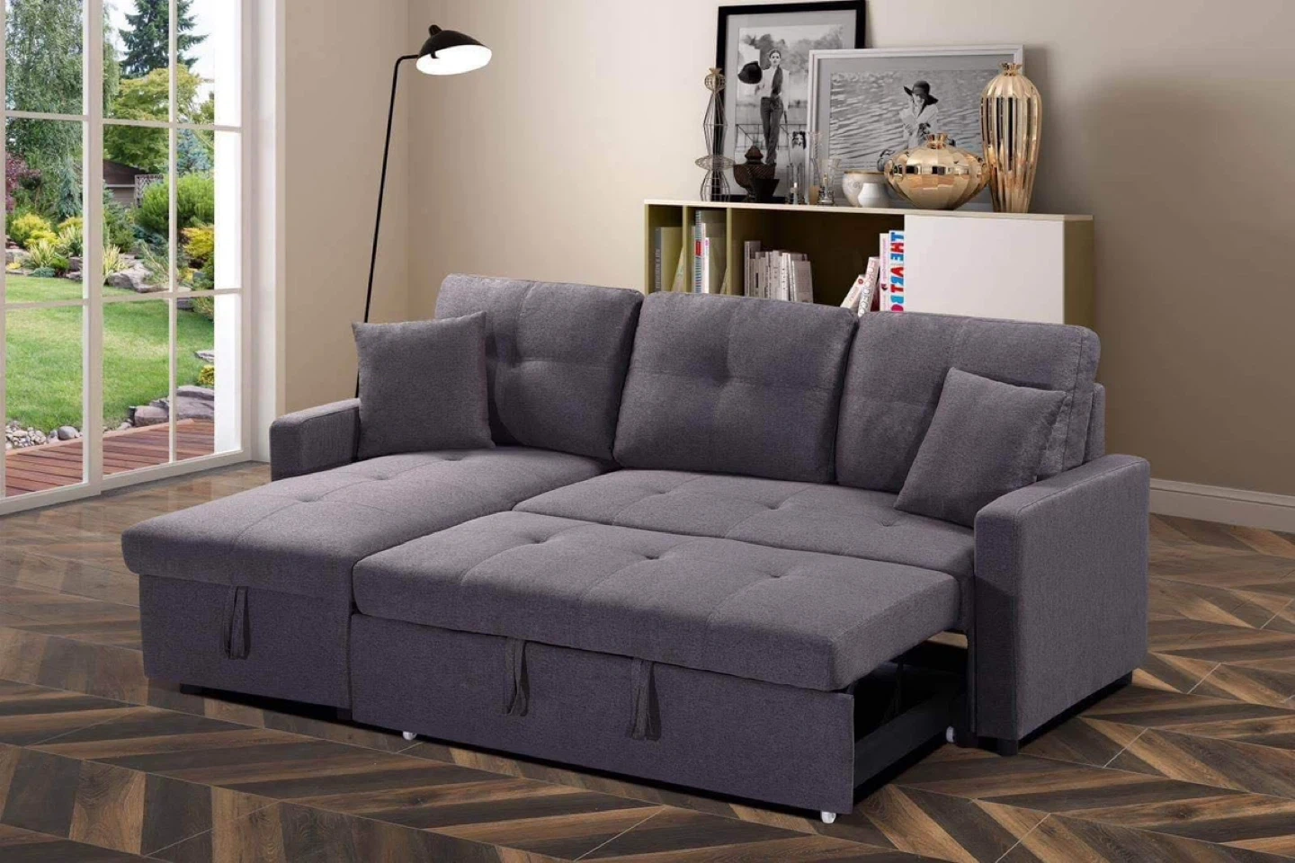 Grey sectional Sofa Bed with Storage