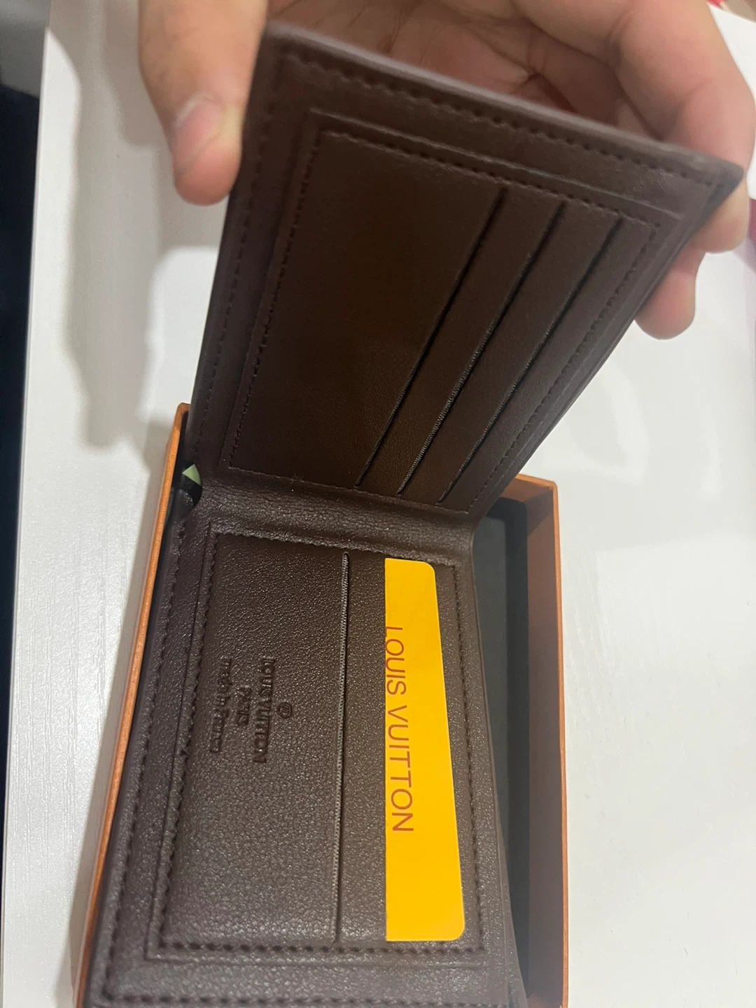 Selling a stylish Louis Vuitton wallet! It's a lovely brown leather with the classic LV design. Comes with the original box, perfect for gifting or keeping it safe. It has slots for cards and a compartment for bills. Great condition and ready for a new owner