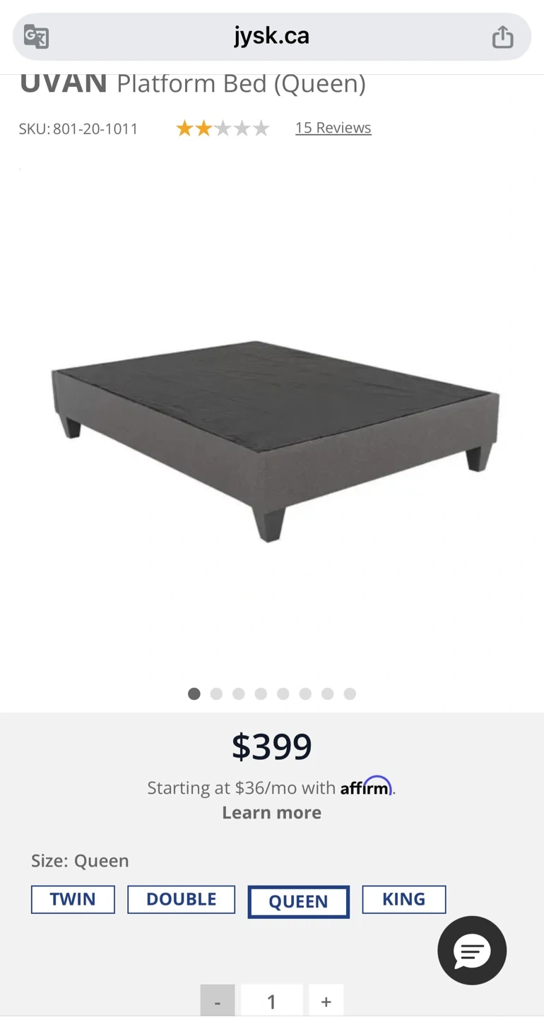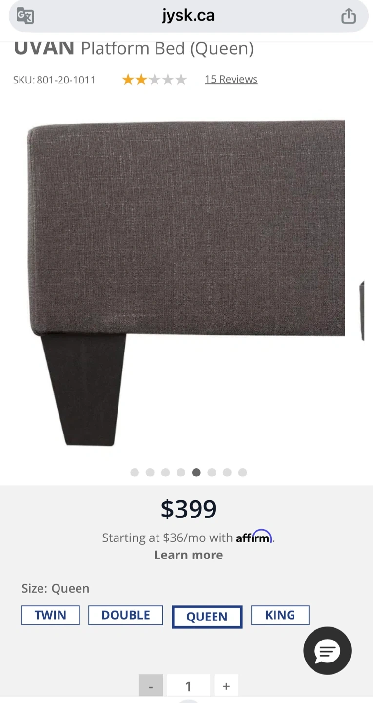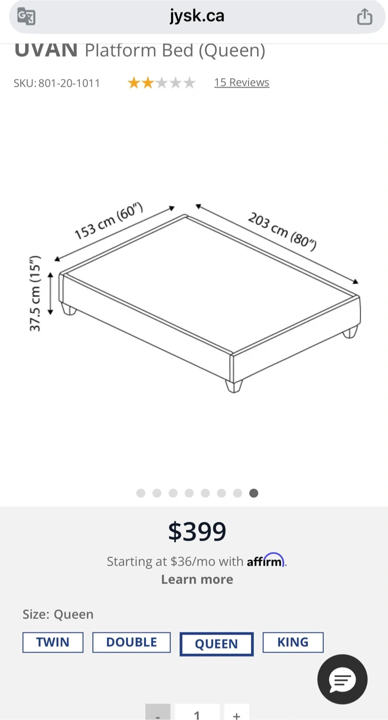 This UVAN platform bed frame is a queen size, offering a sturdy foundation for your mattress. It's upholstered in a dark grey fabric. The frame's dimensions are 203 cm long, 153 cm wide, and 37.5 cm high. This bed frame is perfect for creating a minimalist bedroom setup. Almost new.