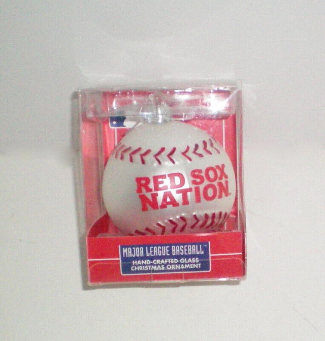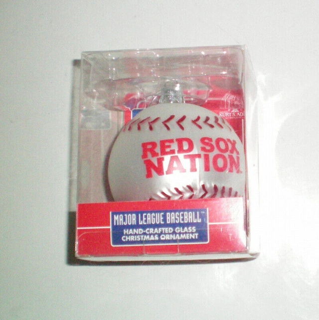 MLB Red Sox Nation Christmas Ornament - By Kurt S. Adler - Baseball shaped Xmas ornament with hand-painted red baseball stitching and Red Sox Nation - Handcrafted in the tradition of European mouth blown glass - Handpainted by skilled artesians with intricate details - Comes in original see through plastic box The Bo-Sox appreciate your support during the holidays. Feel free to message if you have any questions!
