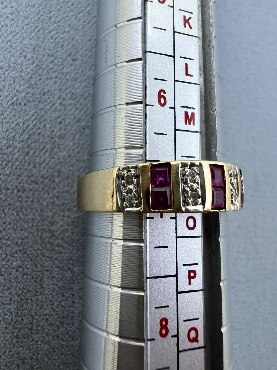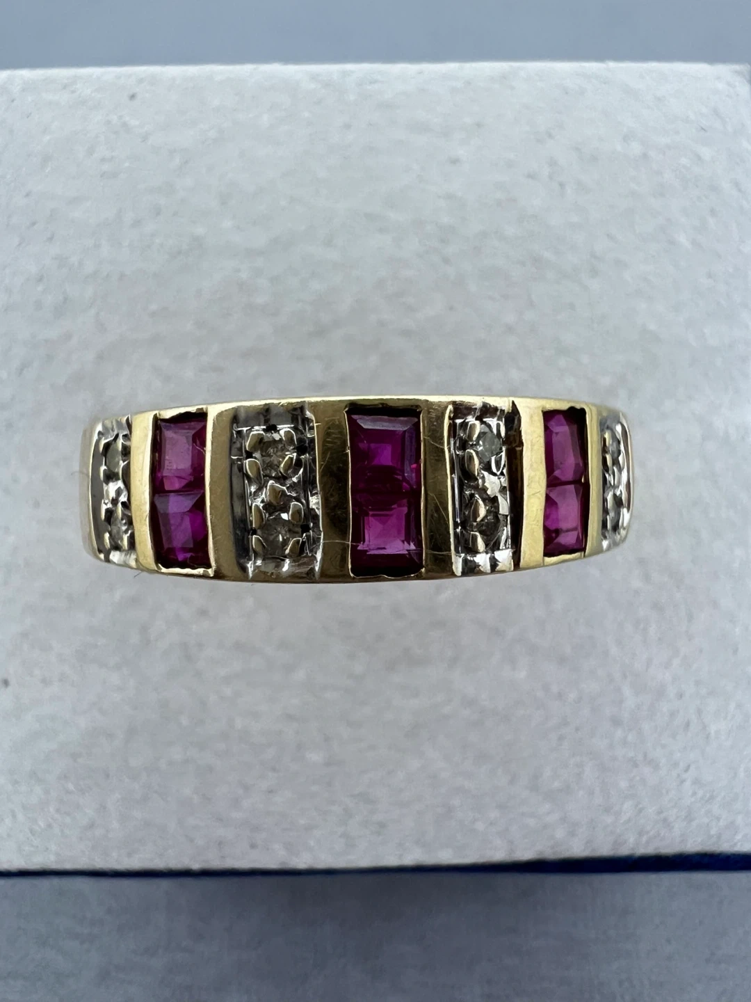 Alternating channel-set natural rubies and shimmering real diamond accents