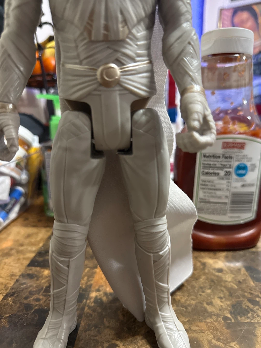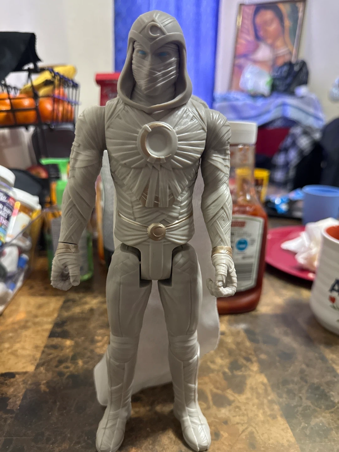 This is a Moon Knight action figure. It's made of plastic and includes a cape. It's great for collectors!
