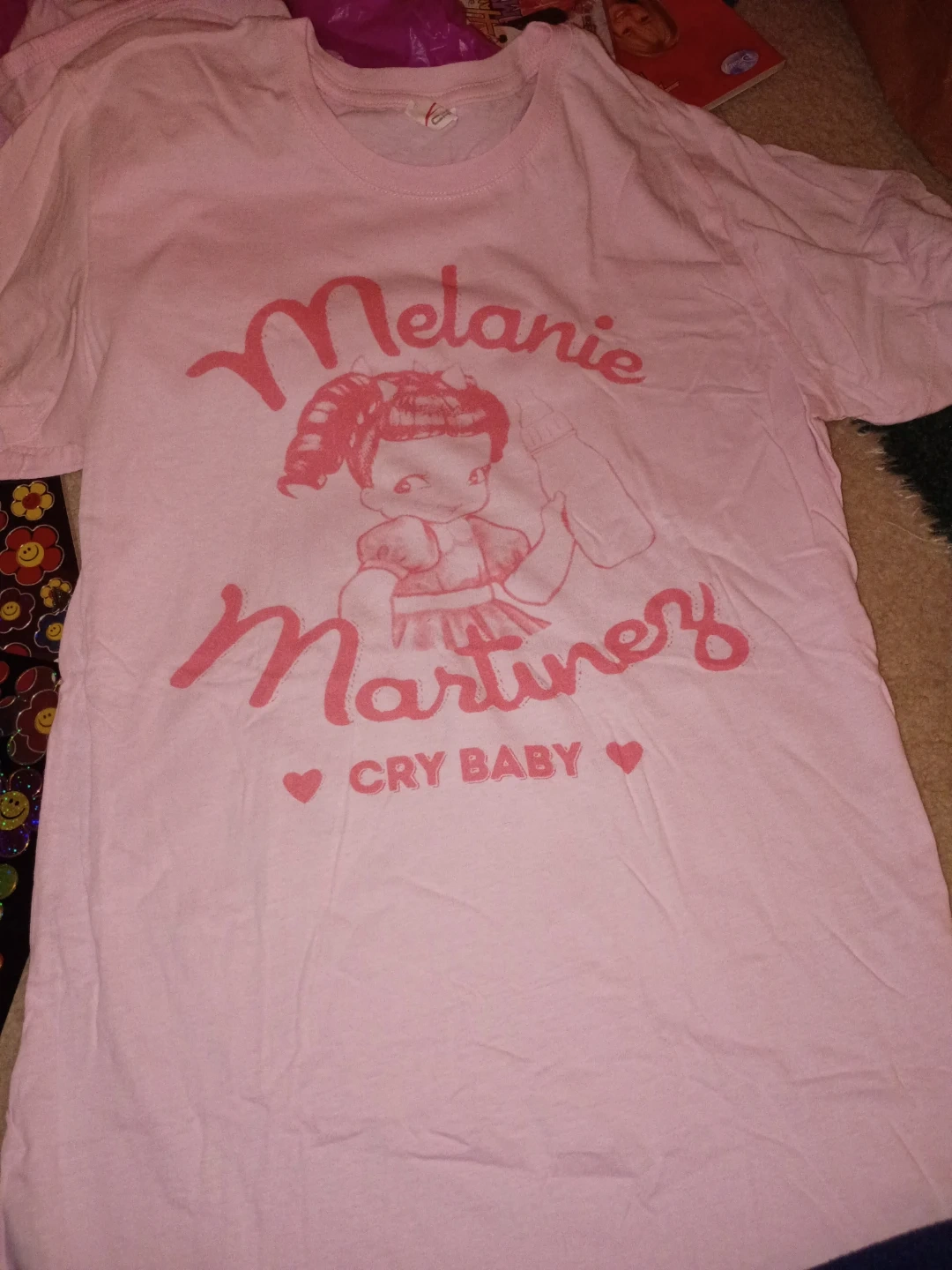 This is a pink t-shirt featuring Melanie Martinez's Cry Baby design. It's made of 100% cotton and is a size 2XL. This shirt is great for fans of Melanie Martinez. In very good condition as you can see! Washed twice but never used! Originally from hot topic back in 2017!