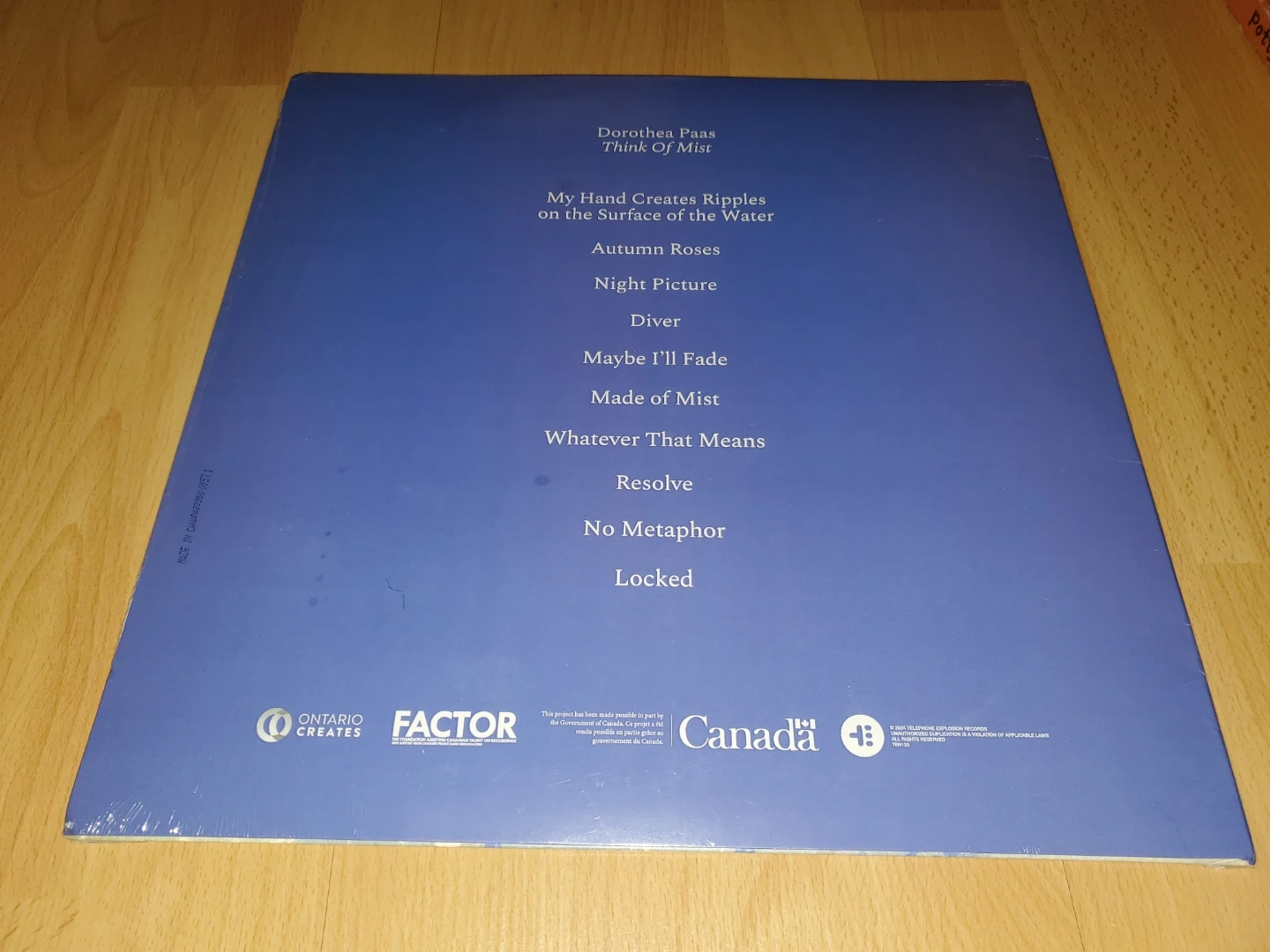 Dorothea Paas 'Think Of Mist' on limited milky clear vinyl. This record features tracks like 'My Hand Creates Ripples on the Surface of the Water', 'Autumn Roses', and 'Locked'. It's part of a limited edition run. Pressed by Telephone Explosion Records.