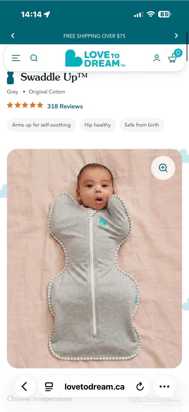 This grey Love To Dream Swaddle Up is made from original cotton. It helps babies self-soothe with their arms up. It's safe from birth.