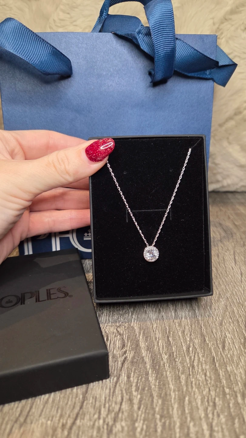 Beautiful lab-created white sapphire sterling silver necklace from Peoples Jewellers. Brand new, never worn, and includes the original box and bag. Regular retail price $129.