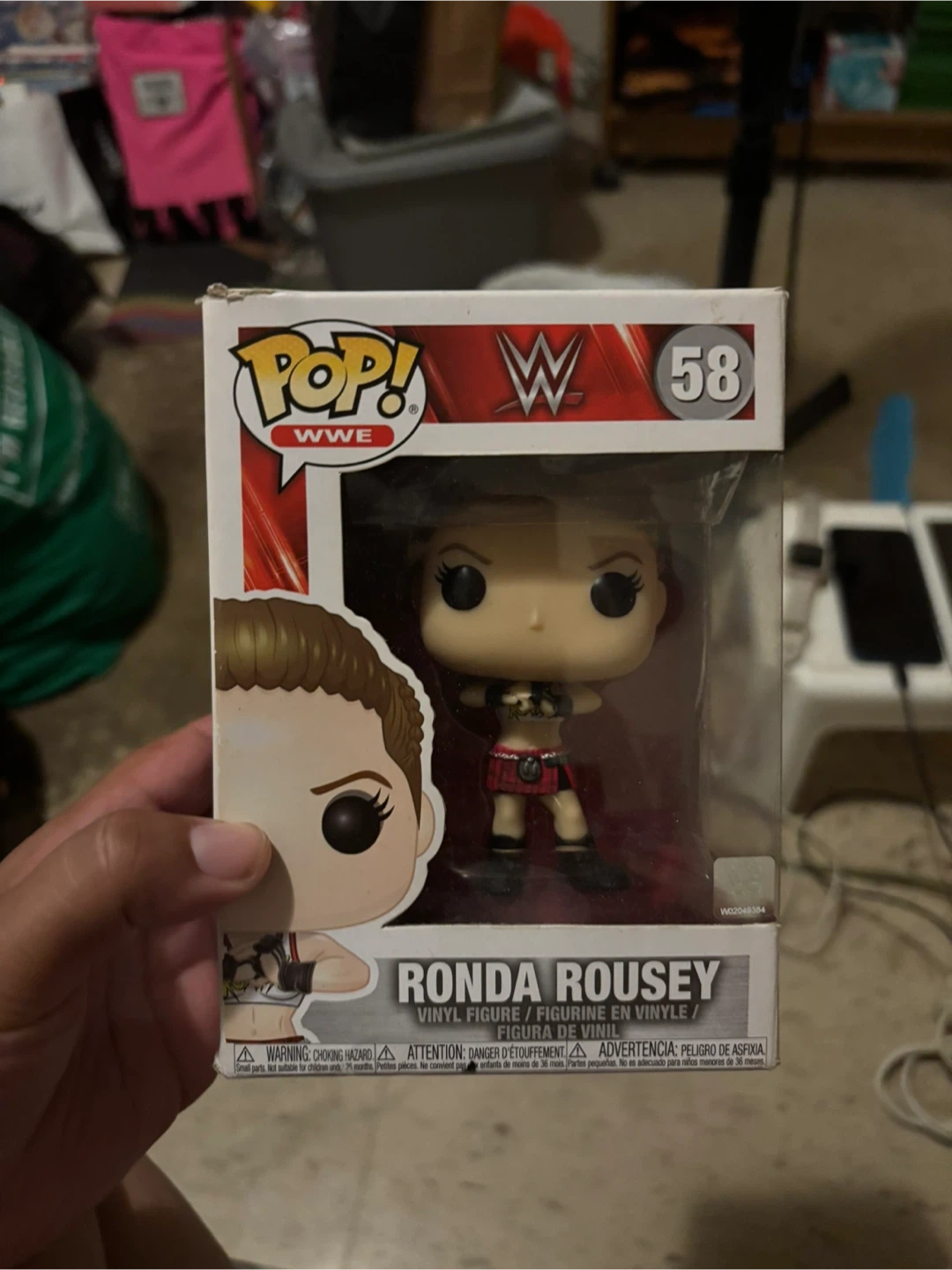 Selling a Funko Pop! vinyl figure of Ronda Rousey from WWE. It's number 58 in the series. The figure is in its original box
