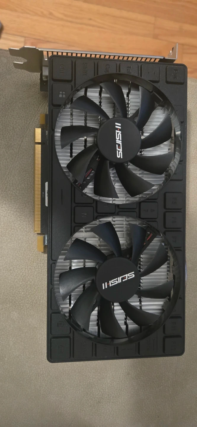 This is a Radeon RX 580 graphics card with 8GB of GDDR5 memory. It features dual fans for cooling. This card is great for gaming and other high-demand applications.