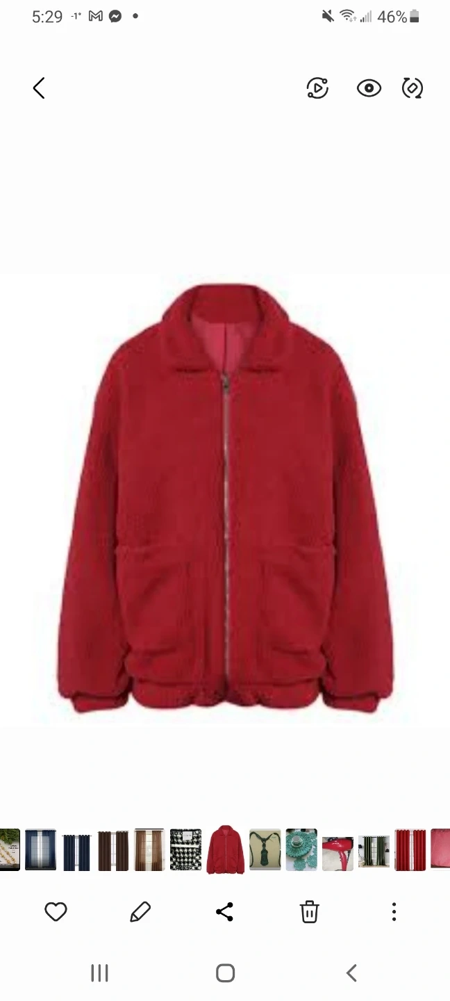 Here's a cozy red zip-up jacket! It has a classic design and is perfect for layering or wearing on its own. It looks to be in great condition and ready for a new wardrobe