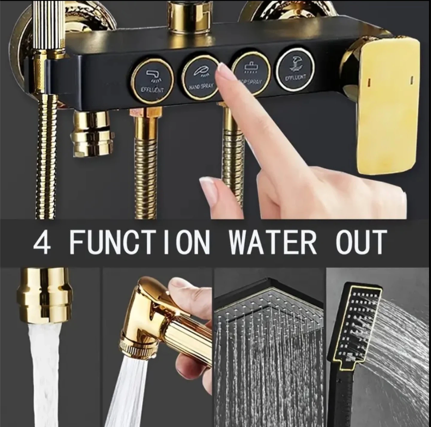 Brand new Luxury Shower Set - 4 Function Black Gold Rainfall