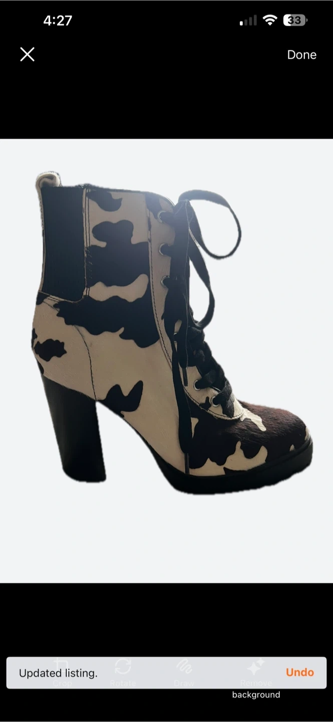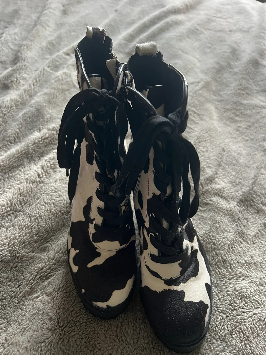 Cow Print Lace-Up Heeled Boots
