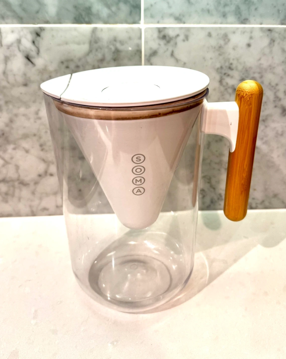 Used SOMA 10-cup water filter pitcher for sale. Stylish and eco-friendly.