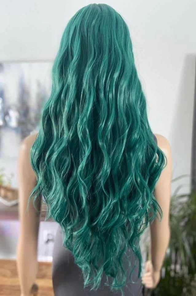 NWOT 26” Long Wavy Solid Green Synthetic Wig 2258