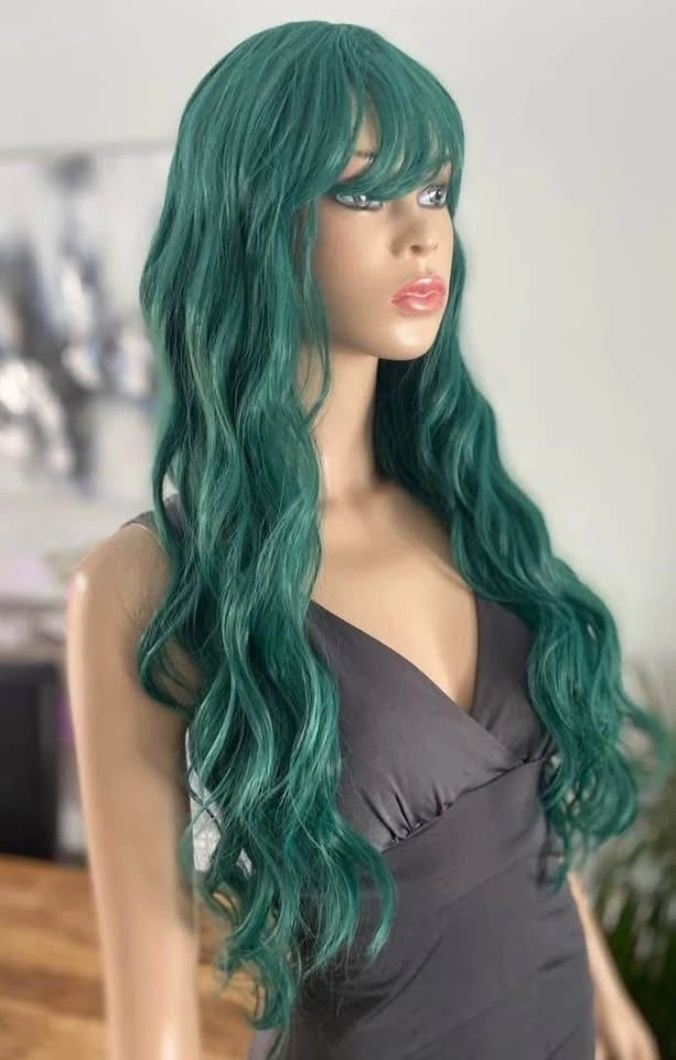 NWOT: 26” Long Wavy/Curly Solid Green Synthetic Wig with Bangs (2258)