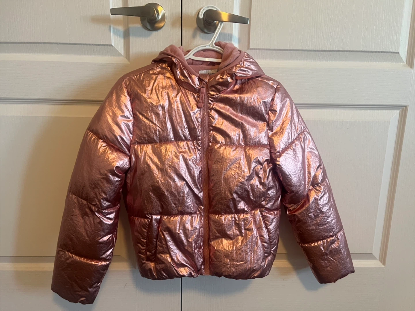 Selling a cute Old Navy puffer jacket in a rose gold colour! It's an XL (14-16). Great for keeping warm and stylish during the colder months