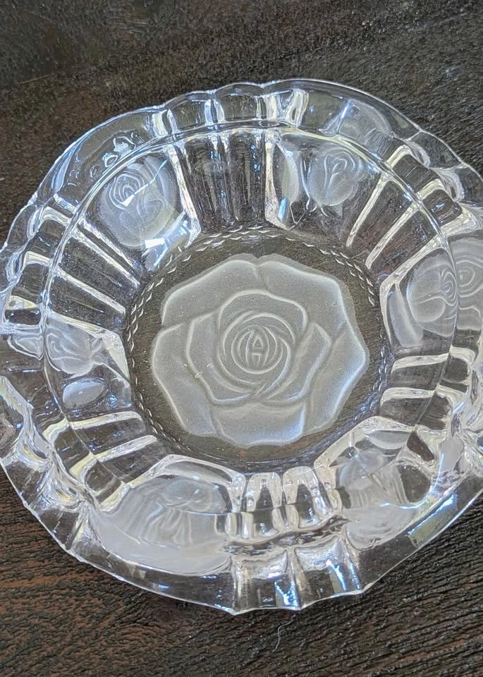 Vintage Pressed Glass Rose Dish / Ashtray ๐น