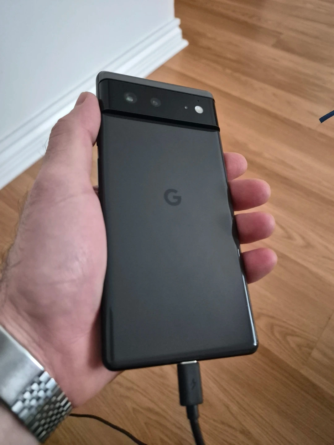 Selling my pixel 6 phone. As is, the phone is working, but it has swollen battery. So no recommended for use. You can see it on picture 3 the battery pushed the screen up, battery needs to be replaced, or you can use the phone for parts.
