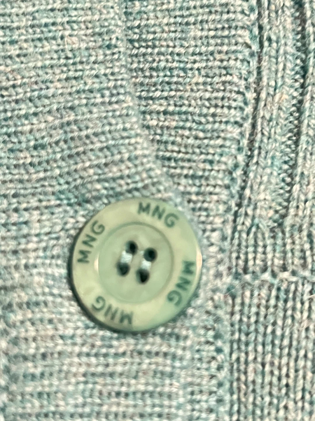 46A lovely MNG Basics cardigan in a light blue colour! It's a size L (D-USA) and in great condition. Perfect for layering or wearing on its own!