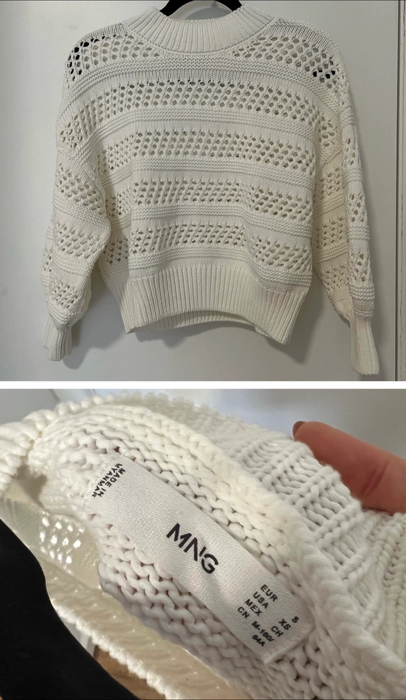 Cozy cream-coloured knit sweater from MNG in size XS. Perfect for layering or wearing on its own. It's in great condition and ready for a new home!