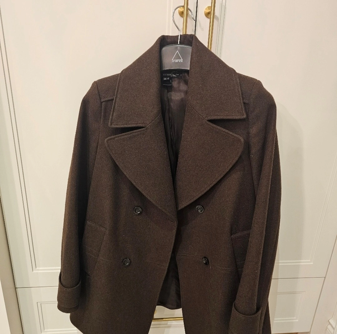 A stylish MNG pea coat in a lovely brown colour! It's made from a blend of 70% wool and 30% polyester, with lining consisting of 51% Viscose and 49% Acetate. Perfect for adding a touch of class to your wardrobe size 6