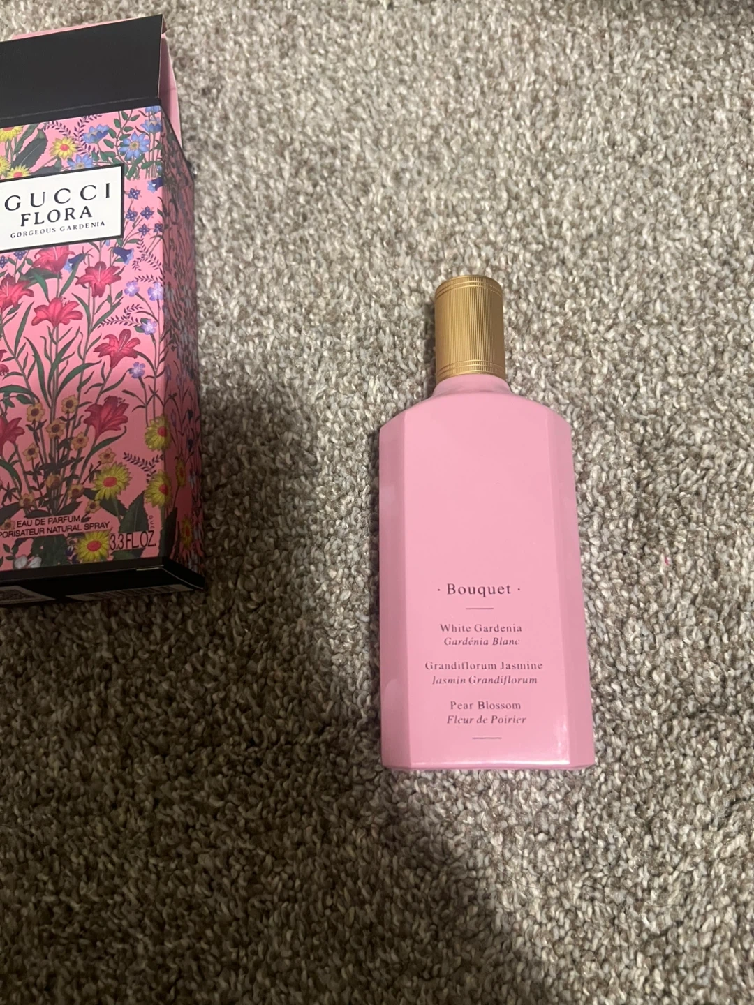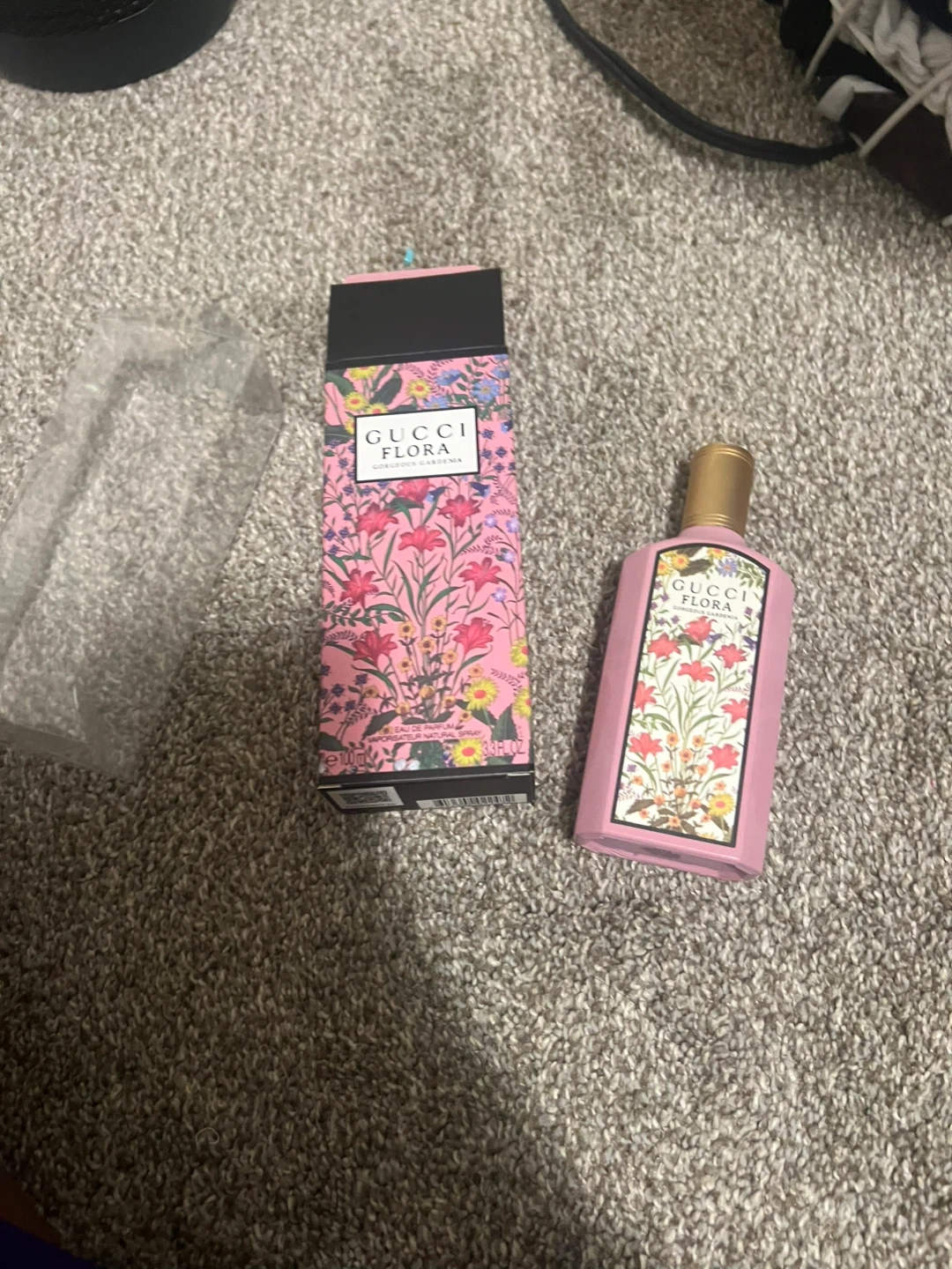 Gucci Flora Gorgeous Gardenia Eau de Parfum. A floral fragrance with notes of White Gardenia, Jasmine Grandiflorum, and Pear Blossom. Includes original box and the 3.3 oz (100ml) spray bottle. This scent is perfect for everyday wear.
