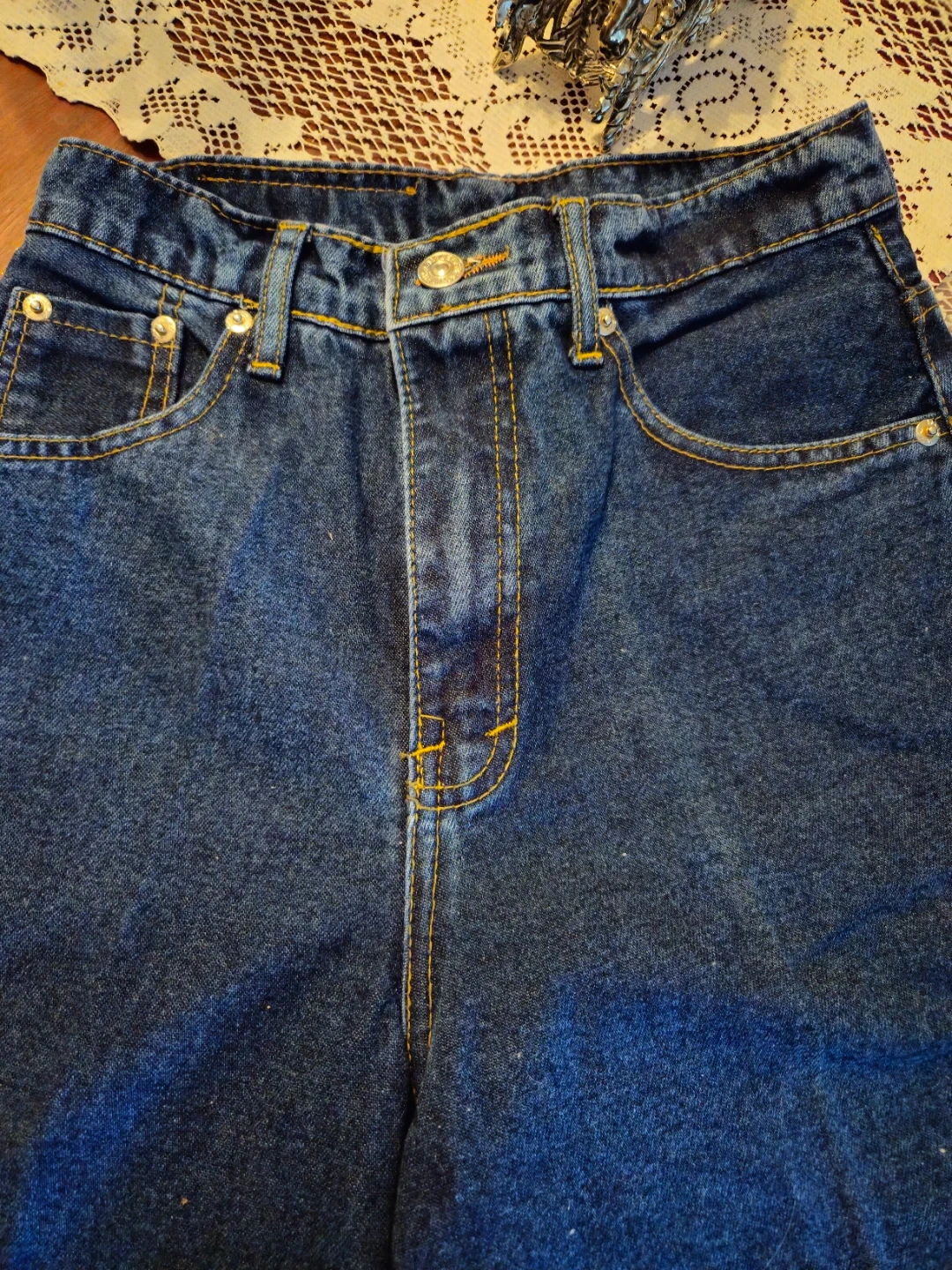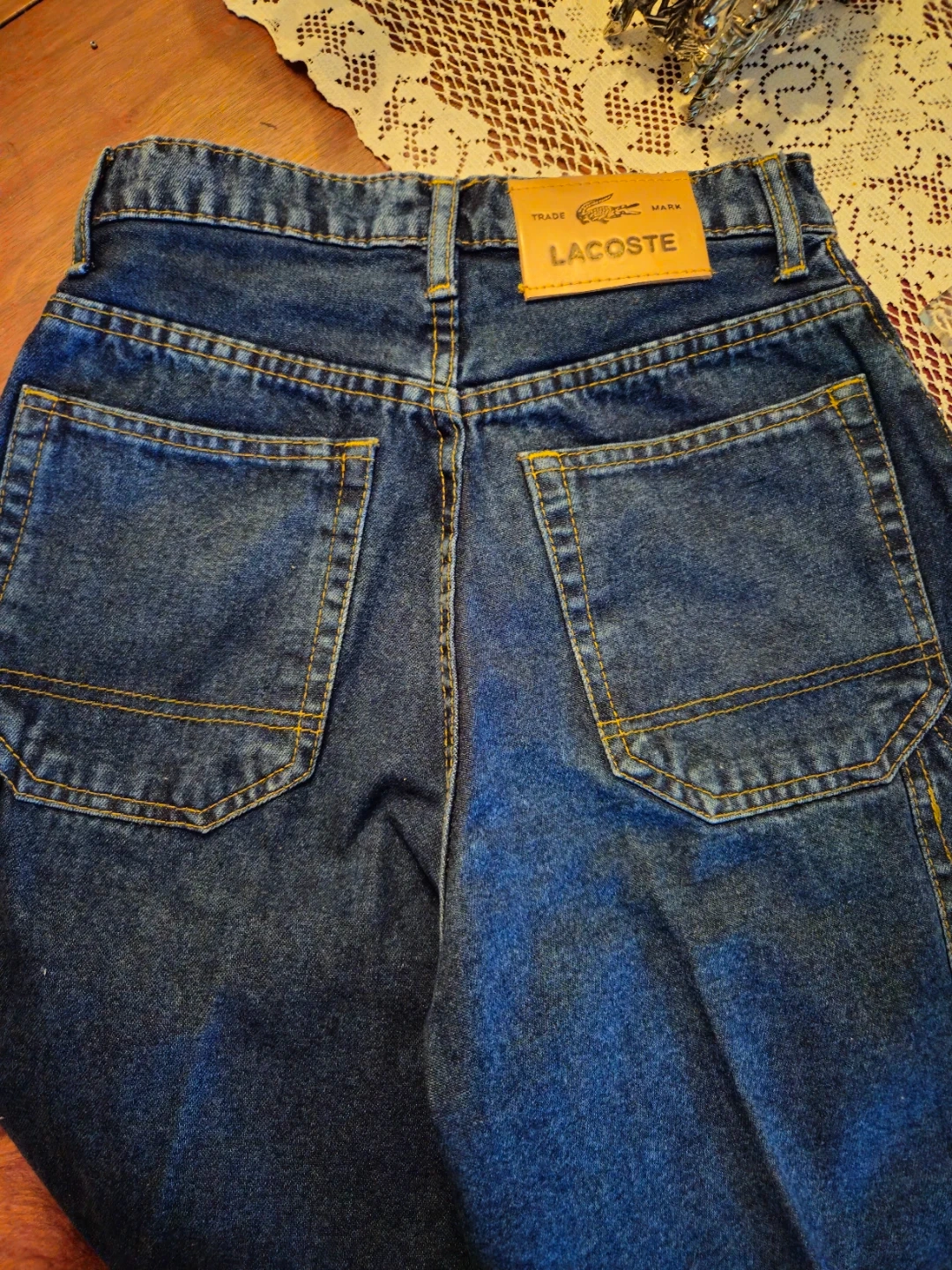 These are blue denim carpenter shorts from Lacoste. They're made of sturdy denim material. Perfect for a casual day out!
