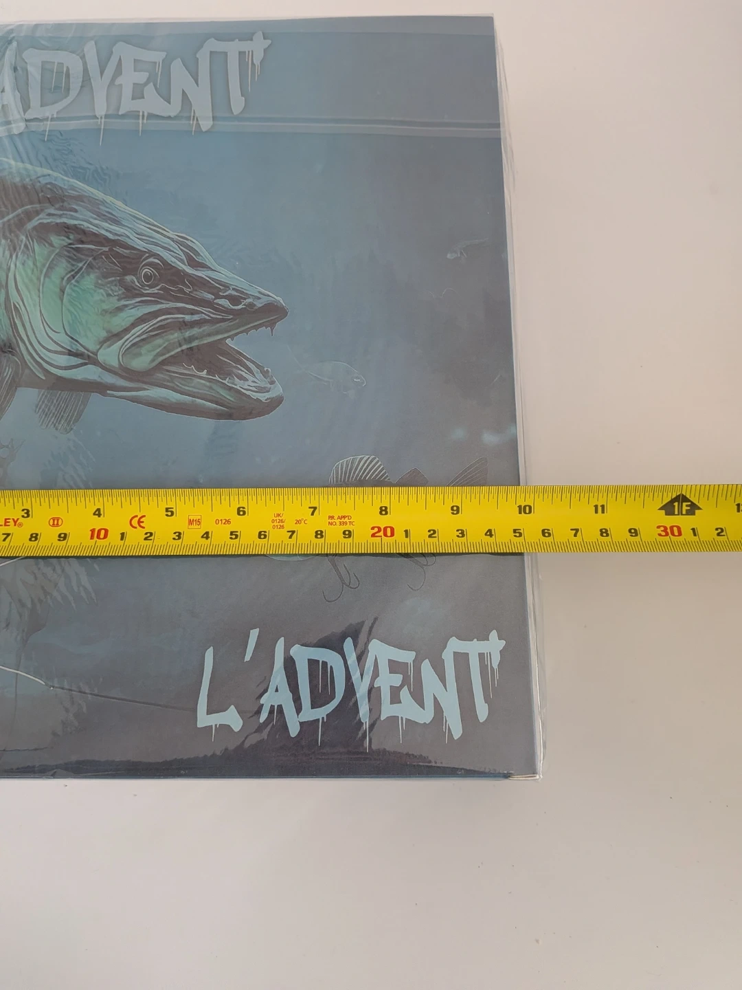 This is the L'ADVENT advent calendar featuring a fishing theme. It has 24 doors to open, marking the days leading up to Christmas. This calendar would be fun for anglers or anyone who enjoys the outdoors!