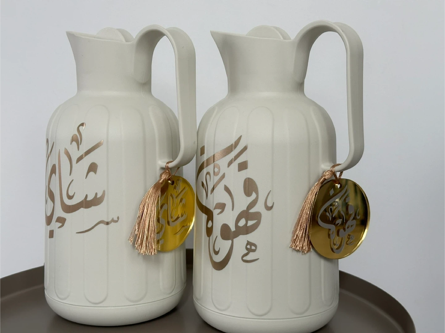 This collection includes a decorative lamp with Arabic calligraphy, a glass pitcher with gold accents, a wooden cutting board, and a set of two towels, all Perfect for Ramadan or Eid decorations, these pieces add a festive touch to your home.