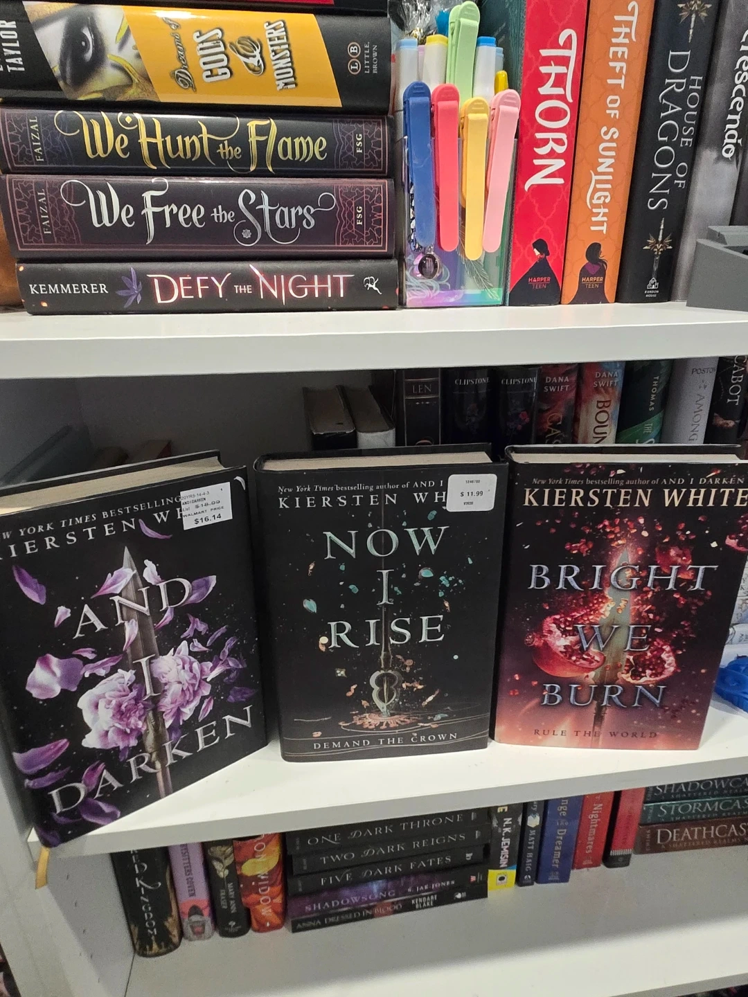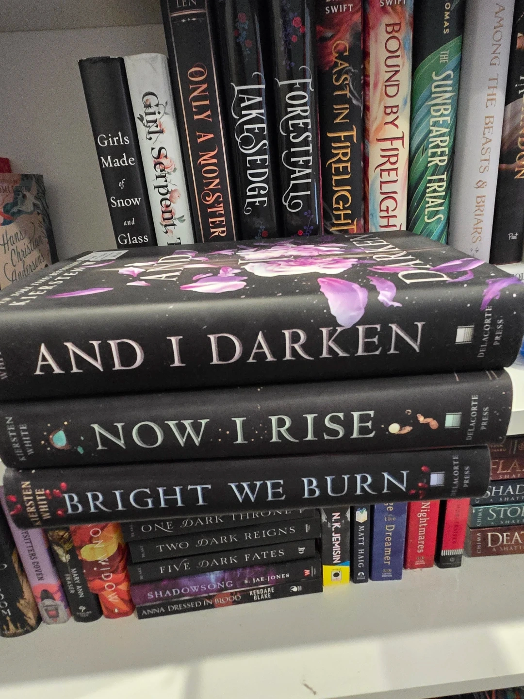 And I Darken, now I Rise, bright & burn (I have 2 copies) by Kiersten White $10 each or $25 for all
