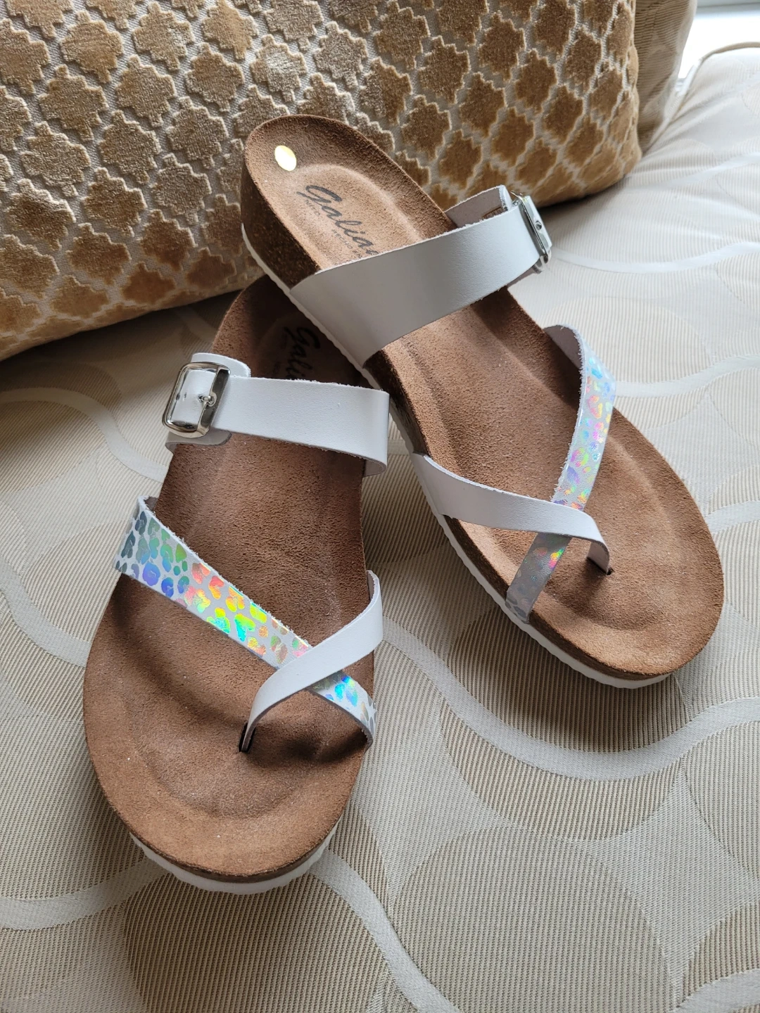 Galiana White & Iridescent Strap Sandals - Women's Size 9.5