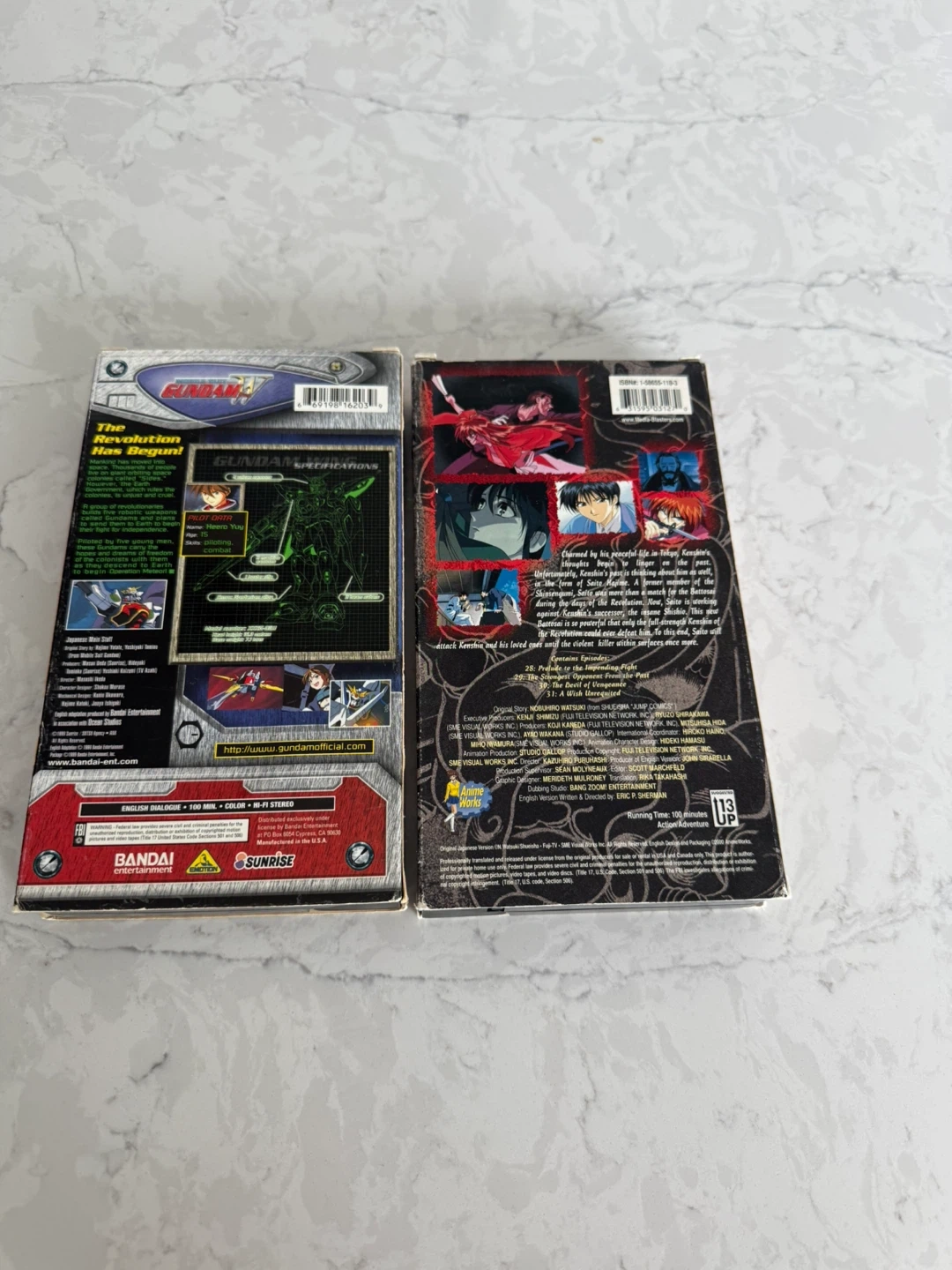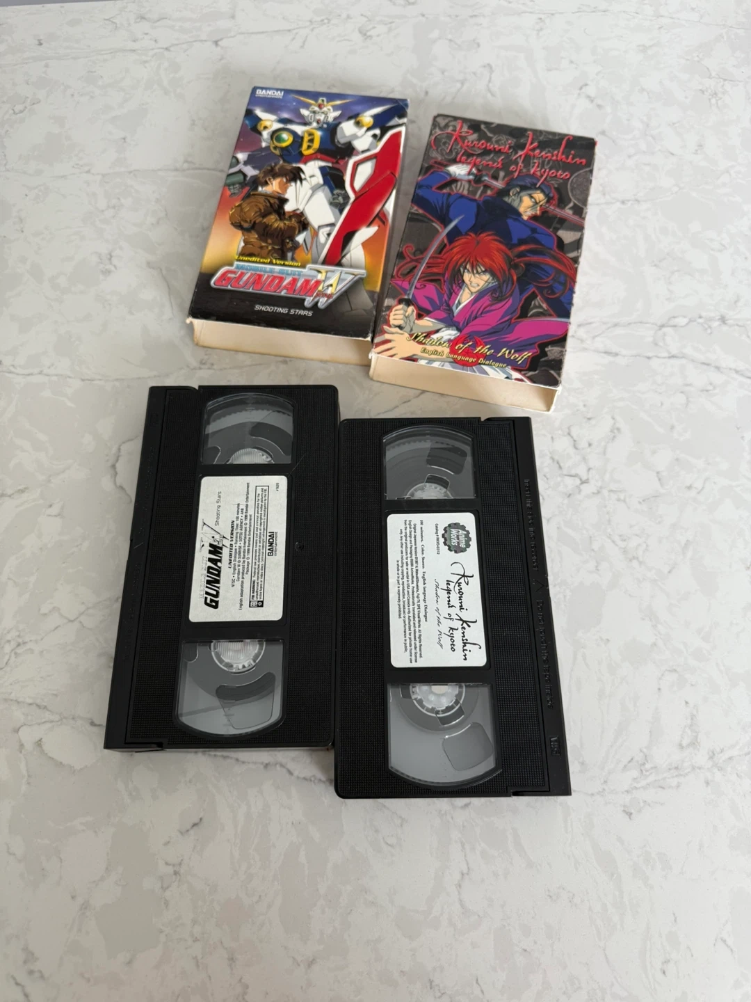 Selling two VHS tapes: Mobile Suit Gundam 08th MS Team Shooting Stars (Unedited Version) and Rurouni Kenshin Legend of Kyoto Shadow of the Wolf (English Language Dialogue) Both tapes are in good condition!