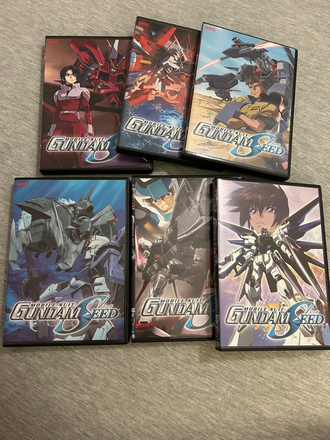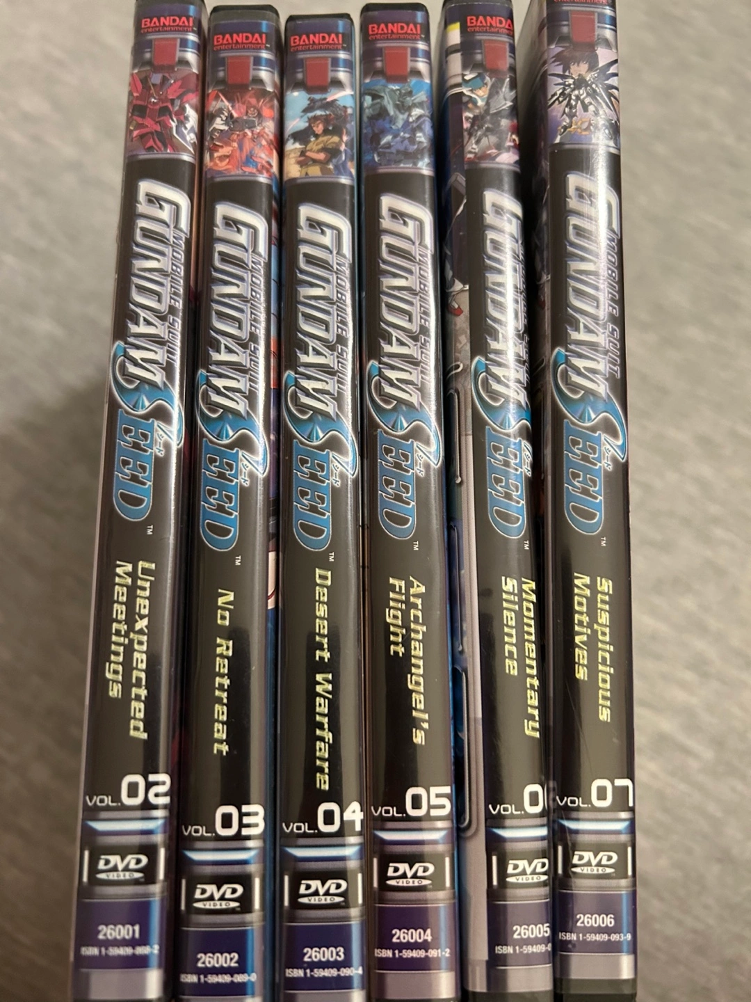 Selling a collection of Mobile Suit Gundam Seed DVDs! This includes volumes 2, 3, 4, 5, 6, and 7. Each DVD is in great shape and ready to be enjoyed by a new fan. Perfect for anyone looking to dive into the Gundam universe! (Missing volume 1)