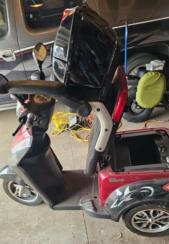 111built for large and small, great scooter with tons of extras, 3 speed, low med high, high is very quick, bought in Ontario for a man who rode it four times before passing away. very stable, large seat with folding armrests, original manuals, headlight( high and low beam) blinkers, running lights, taillights.keyed for security, comes with spare key, horn, anti back flip wheels in the rear storage box behind seat( lockable), underneath (flip up seat) storage, (lockable), also music system and alarm, very loud and sensitive to touch. I have stored this in the garage, and either the cold ruined the battery or the charger, if it is the charger, it is relative cheap to replace if it is the battery expect 4 to 500 for replacement. if stored in a warm location and maintained with charger batteries last 6 to 10years..machine new with all options eas 4200$, due to the battery I will sell for 1500$ or very close., accept cash only, and will help deliver in my truck if it is not to far away, being sold as is. it is in perfect shape, but needs a bath..Being sold as I am not in need of this yet.