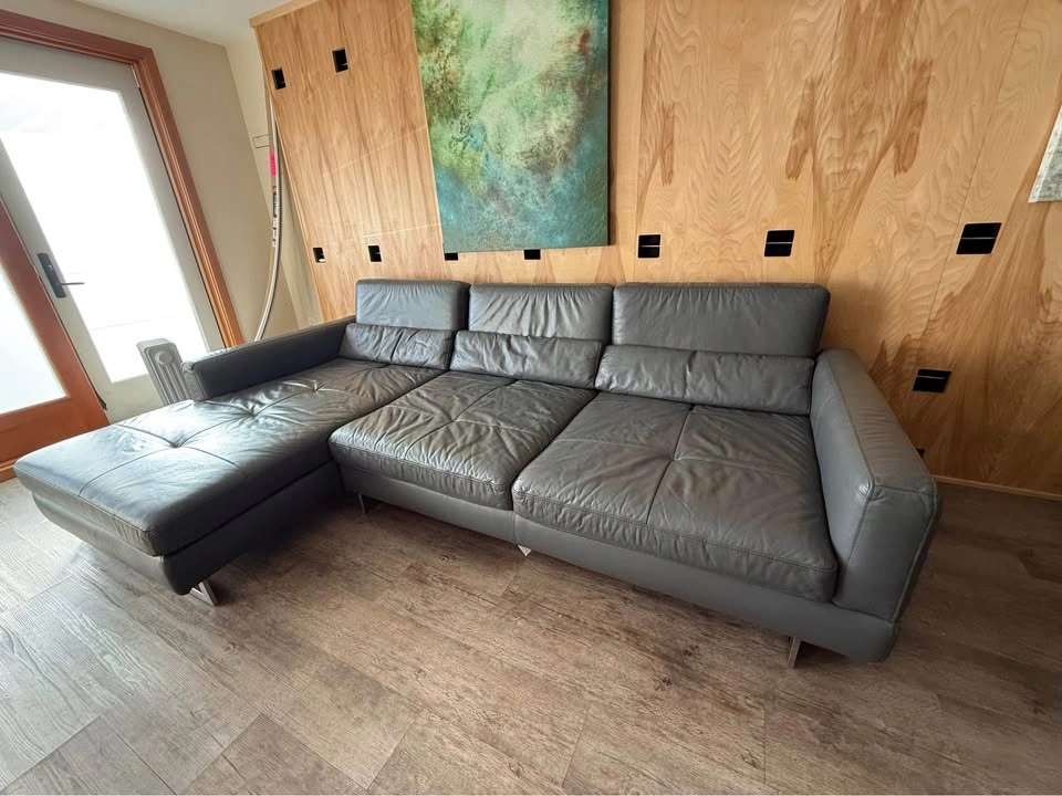 76Real leather sectional from Mobital, in great condition. The backrest slides back β when you push it, the sofa becomes bigger, almost like a bed. Very comfy and stylish, still lots of life left. New ones from Mobital go for over 7500! Before tax β Real leather β Adjustable backrest (push to extend space) β Excellent condition π° Asking $ 1200$ π Pickup by yourself 1100$