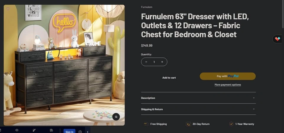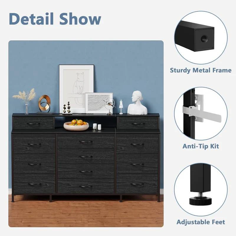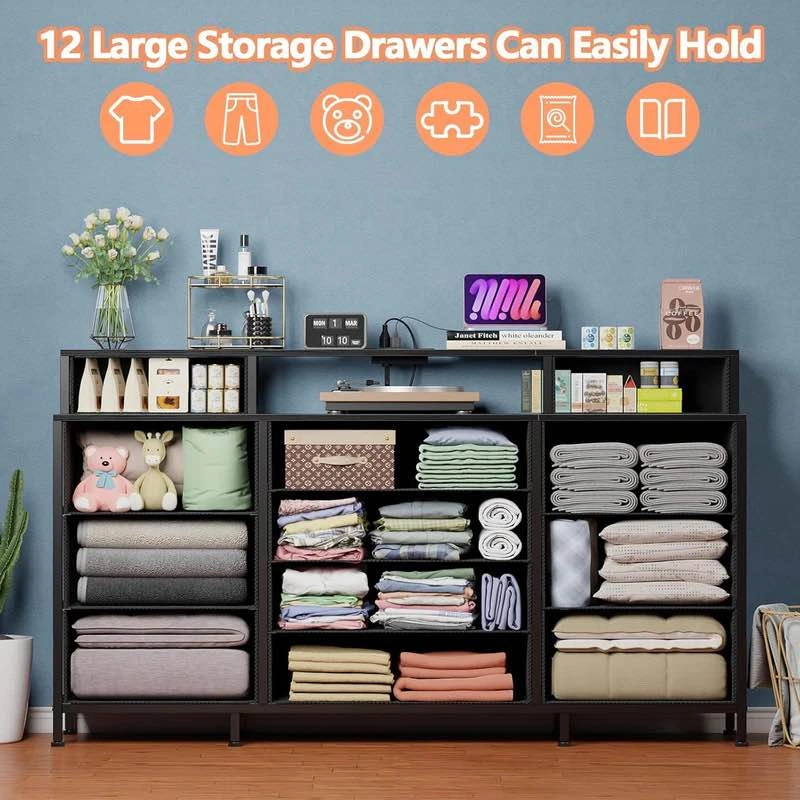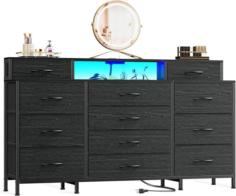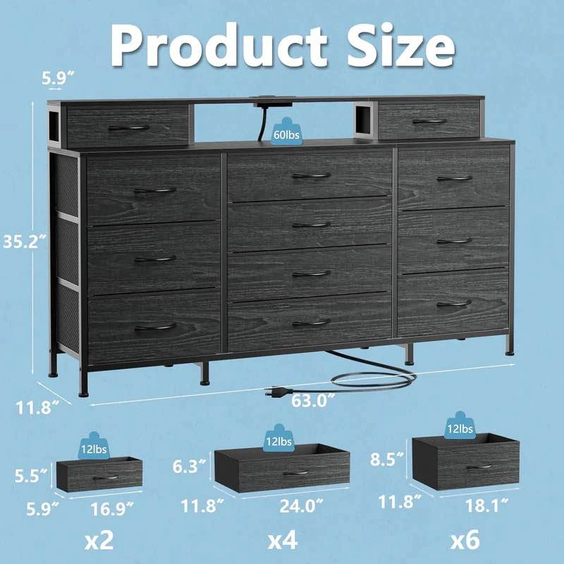 60Brand new Furnulem 63β LED Dresser in Black Oak, still sealed in box. Perfect for bedroom, closet, or living area storage. Modern design with power outlets & LED lights for a cozy aesthetic. π§Ύ Details: β’ β Size: 63β L Γ 35.2β H Γ 11.8β D β’ β 12 Spacious Fabric Drawers (holds up to 12 lbs each) β’ β LED light strip with app & remote control (60k+ color options) β’ β 2 AC outlets + 2 USB ports for charging devices β’ β Sturdy metal frame, anti-tip kit, adjustable feet β’ β Original retail: $150+tax β’ π΅ Your price: $95CAD each β’ π¦ Sealed box, never opened β’ π Bulk available β discount if you buy multiple