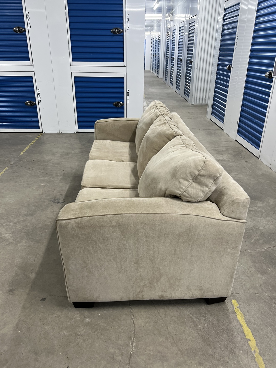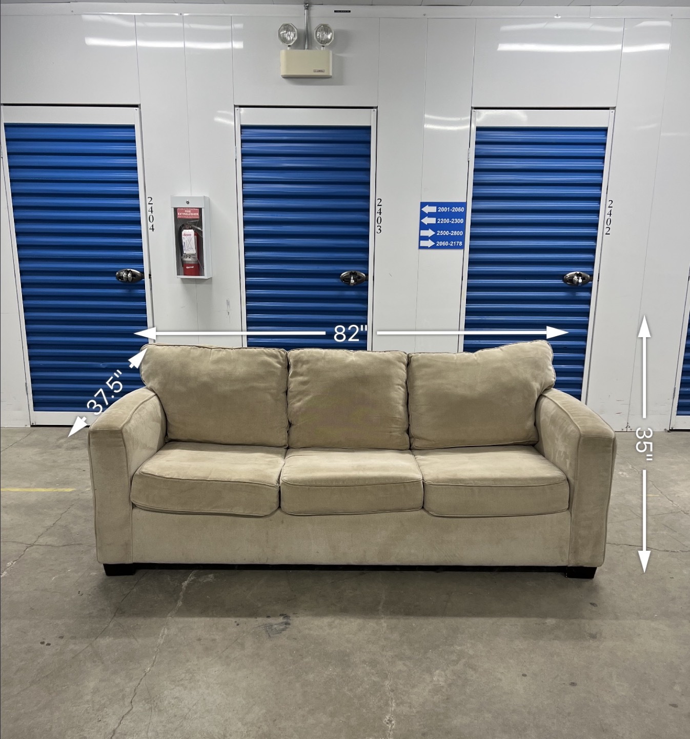 12Tags: Couch, Sofa, Modern, Modern Couch, Beige Couch Selling Modern Beige Couch Details: -Recently been cleaned and detailed -Couch is in great condition. No rips, stains or damages. -Covers can be removed and washed -Came from a pet and smoke free environment -Bed Bug Free -Dimensions are shown in last image Offer Free Delivery in front of your home/ building. If you wish for the couch to be brought into your home, we charge a small fee for the time and labour. Thank you for your understanding. * Check out our wide selections of couches by clicking on our profile! * Thank you for taking the time to view this ad. Please contact us for further information and for any questions you may have.