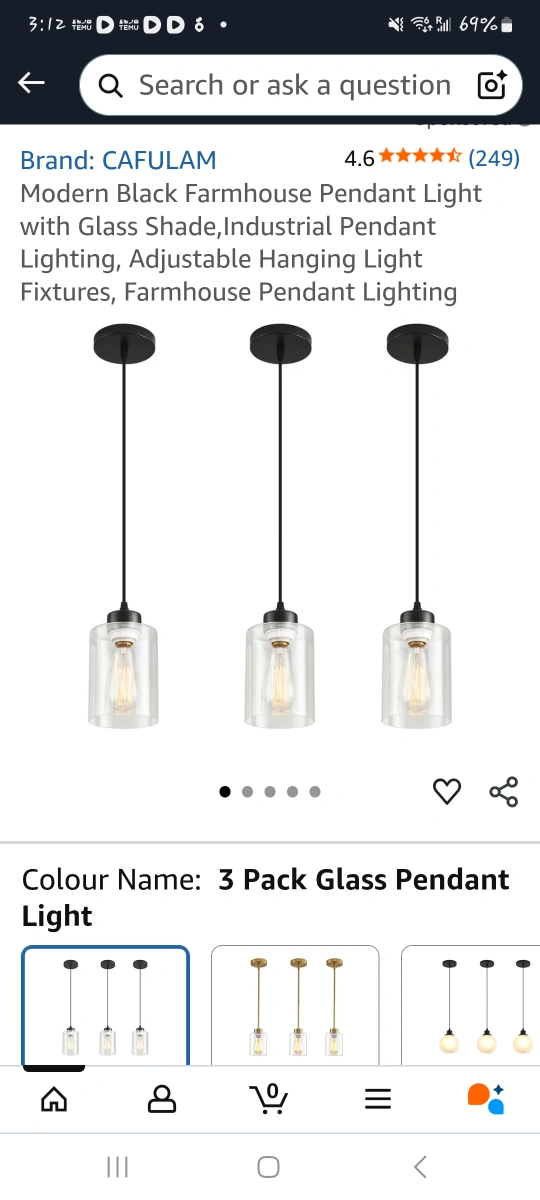 This is a modern black farmhouse pendant light with a glass shade. It's an industrial pendant lighting fixture with adjustable hanging. The dimensions are 65in/165cm (height), 4.7in/12cm (diameter), and 5.9in/15cm (shade height). It uses an E26 bulb with a max of 60W