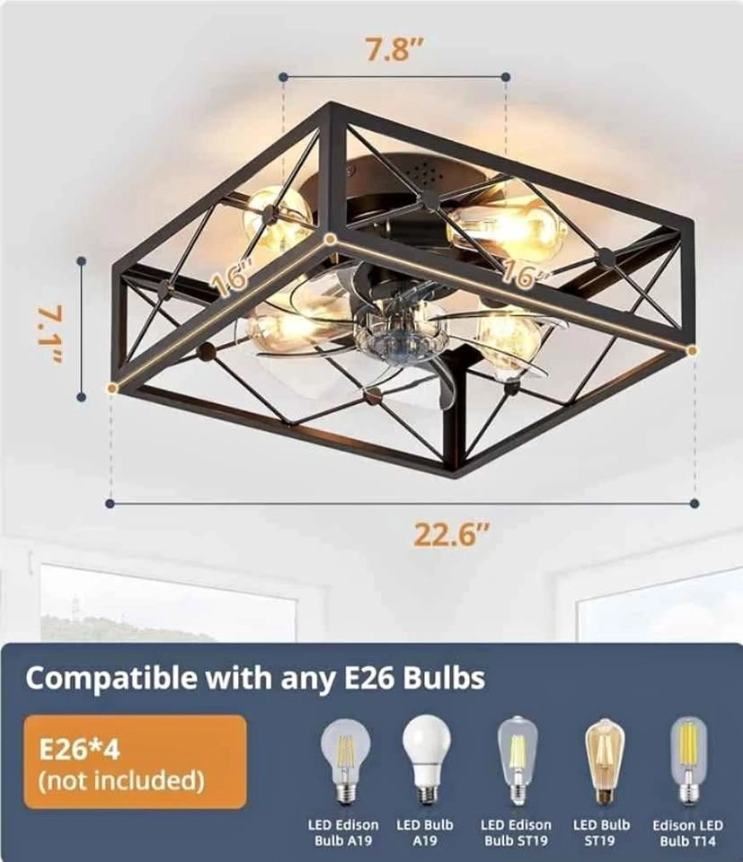 Brand new / great condition. Stylish farmhouse bladeless ceiling fan with built-in LED light. Compact 16-inch design perfect for bedrooms and kitchens. Remote control for easy brightness and fan speed adjustment. Quiet and efficient motor for comfortable airflow. Easy flush-mount installation – ideal for low ceilings. Durable black metal cage design for a modern look. Brand: LEDIARY. Pick-up: North York (Sheppard Ave West / Allen Rd)