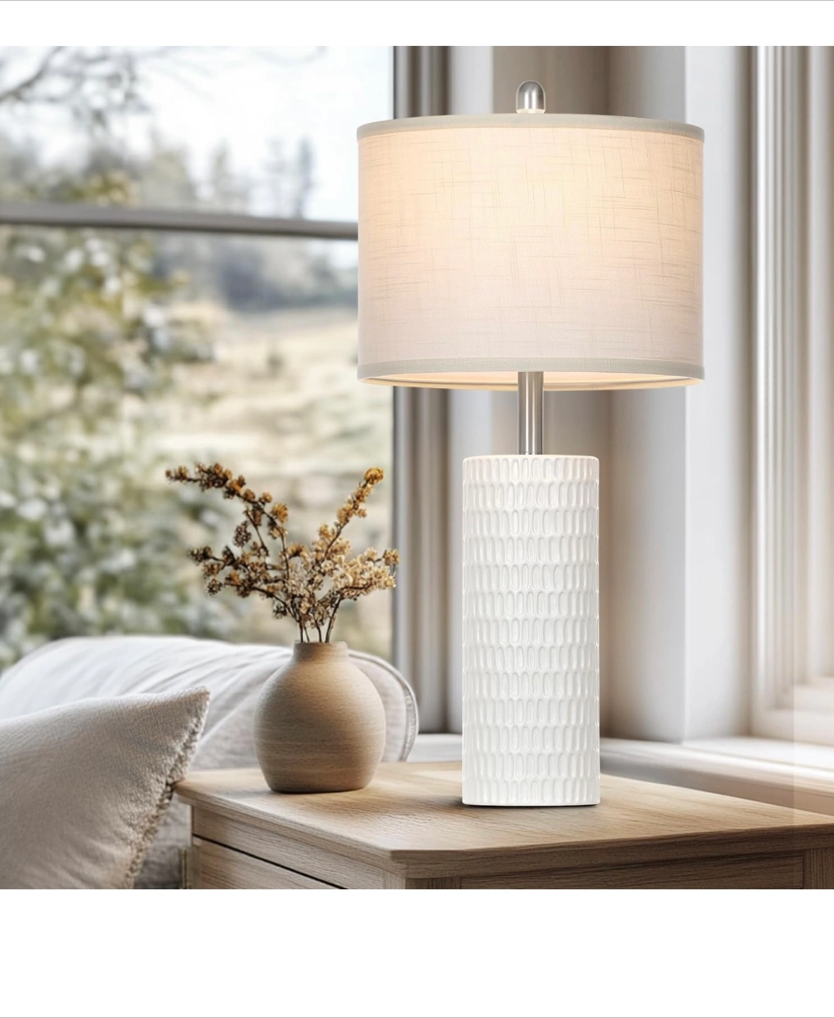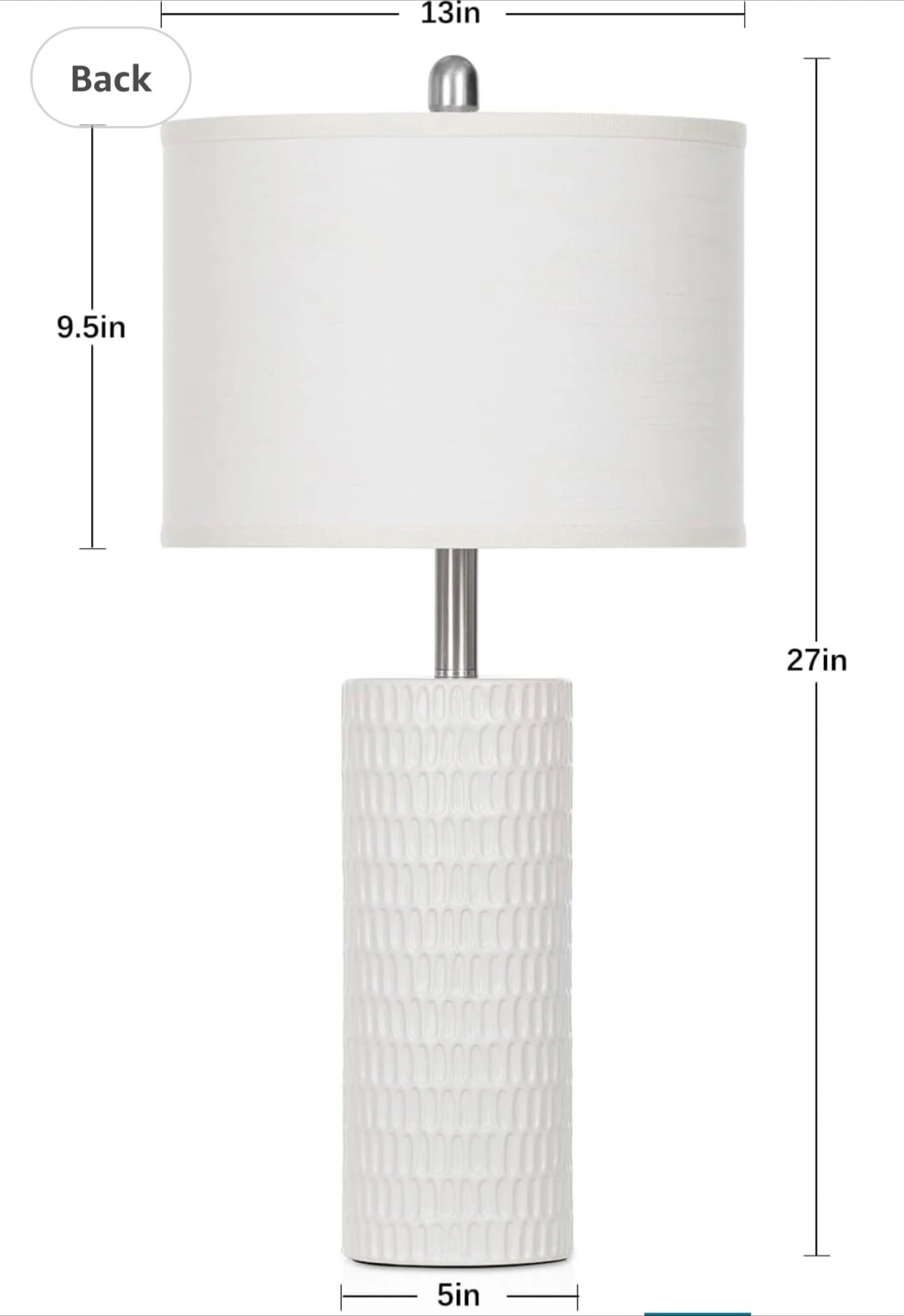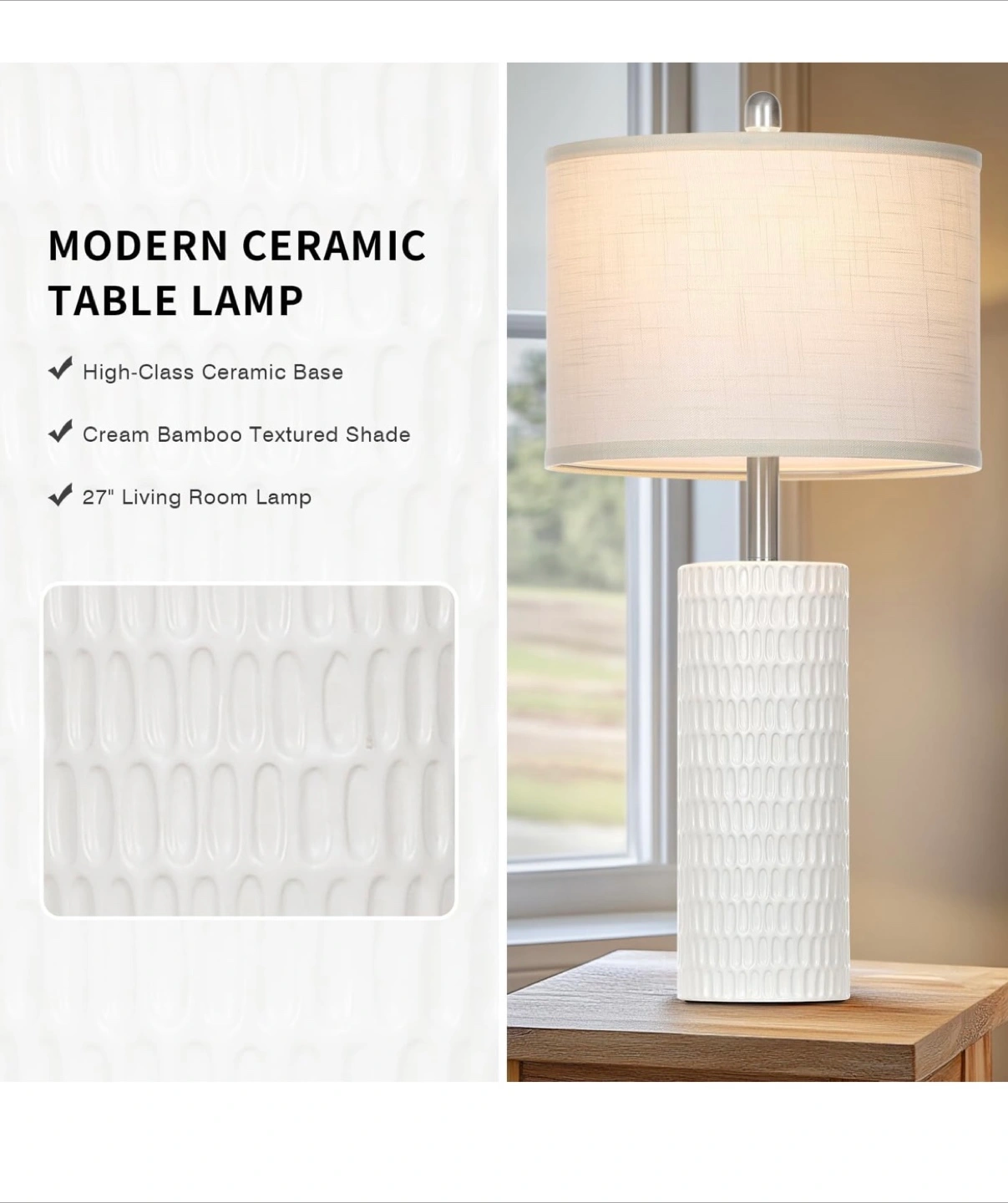 Add a touch of modern elegance to your space with this beautiful ceramic table lamp! It features a high-class ceramic base and a cream bamboo textured shade. This lamp is 27 inches tall, perfect for a living room or bedroom side table Set of 2 New