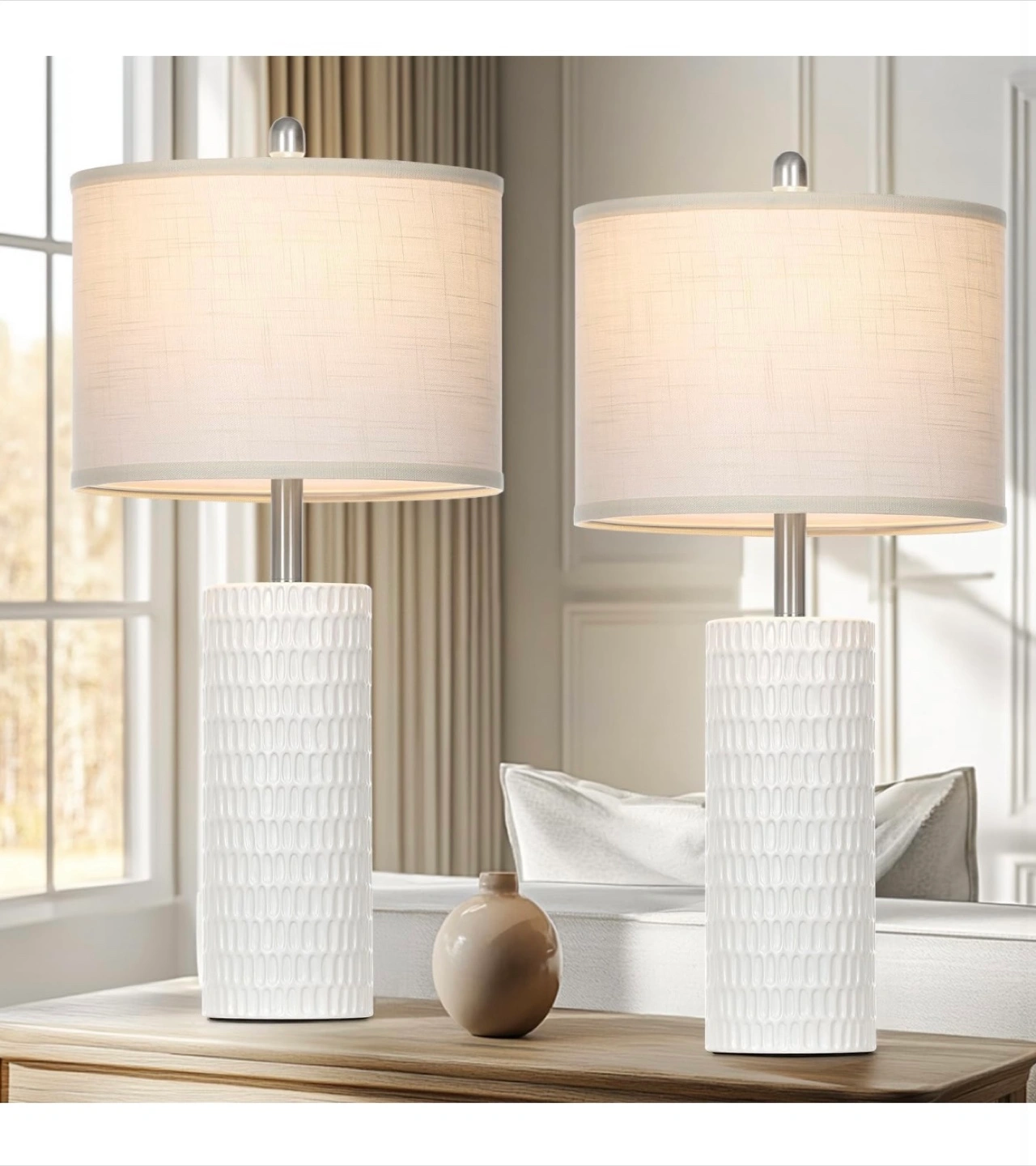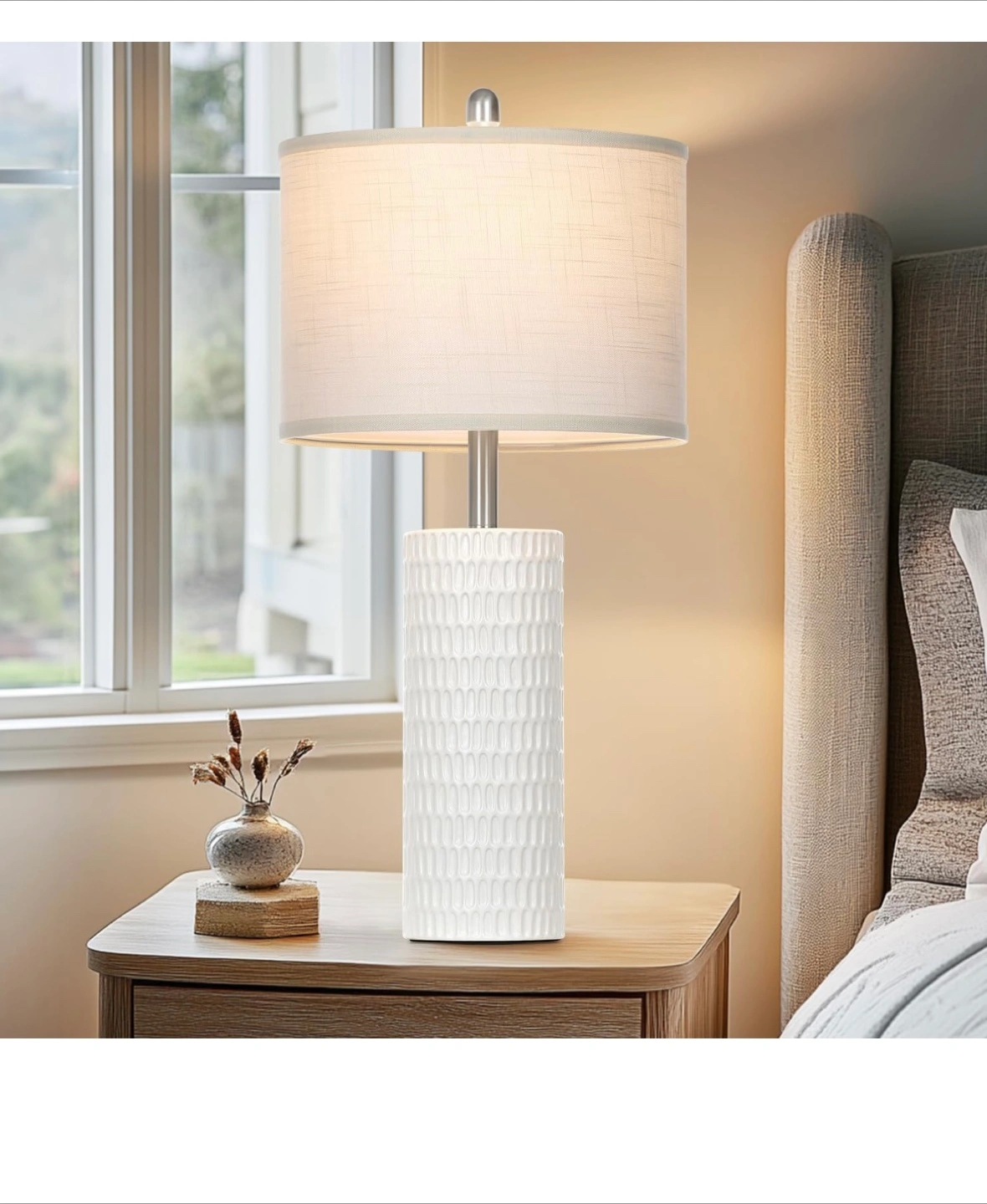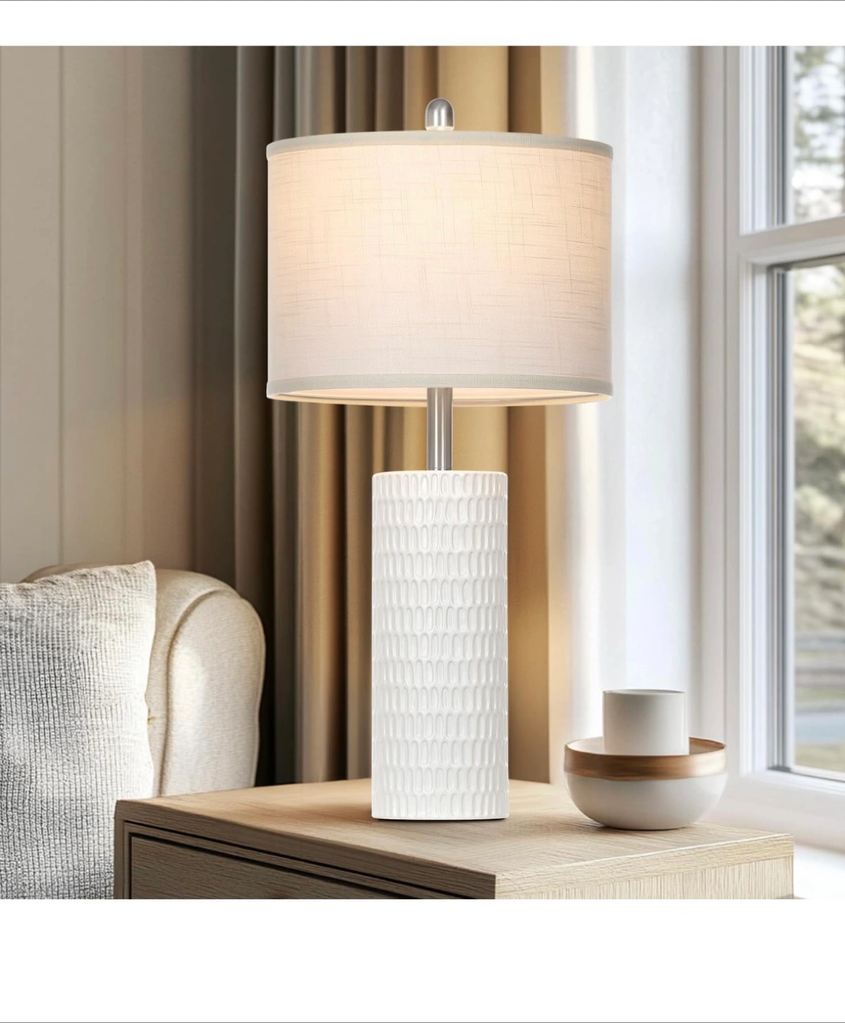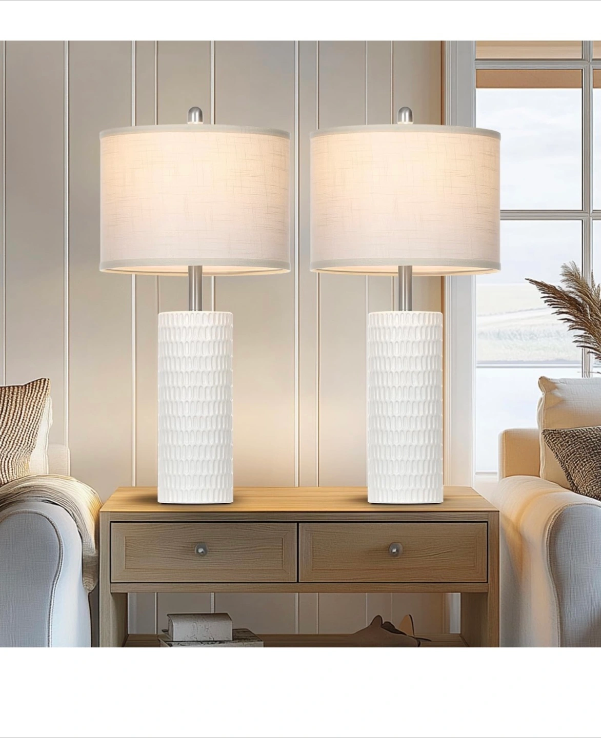 Add a touch of modern elegance to your space with this beautiful ceramic table lamp! It features a high-class ceramic base and a cream bamboo textured shade. This lamp is 27 inches tall, perfect for a living room or bedroom side table Set of 2 New