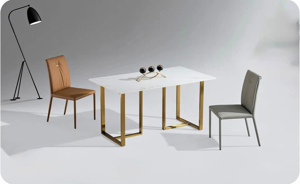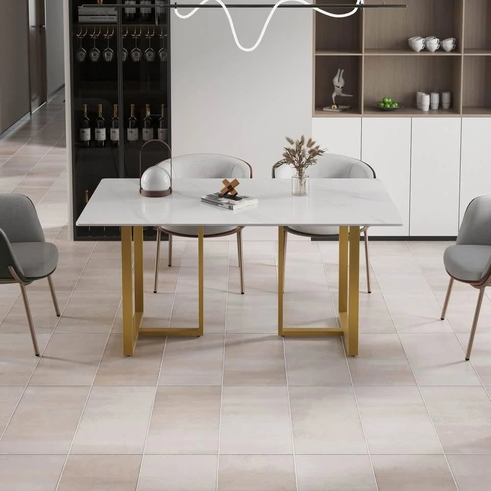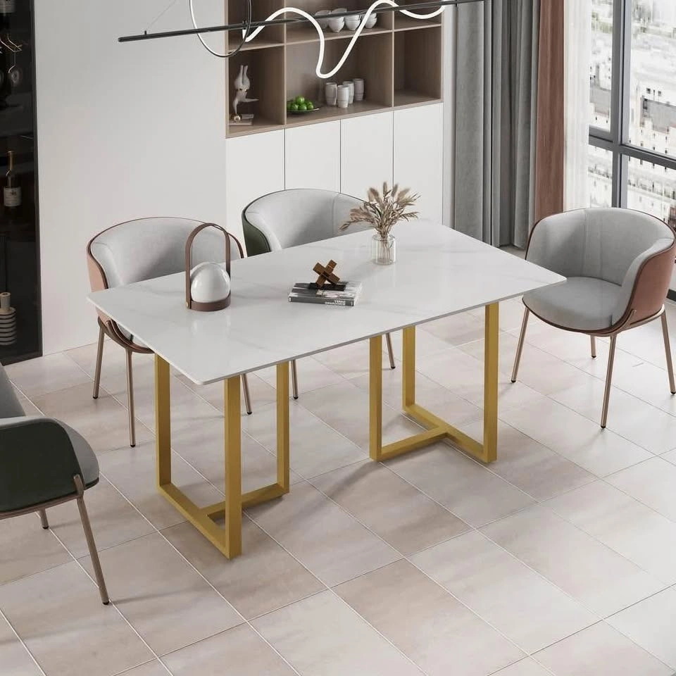 73This is brand new. Tabletop: White sintered stone – durable, scratch-resistant, heat-resistant, and easy to clean Base: Stylish gold-finished stainless steel legs that provide strong support and a modern aesthetic Maintenance: Low maintenance surface that retains its shine and elegance with minimal effort Design: Clean lines and a minimalist look that suits a wide range of interiors Please note the price is for the dinning table only. We also have matching dinning chairs for this dinning table. Message for more details.